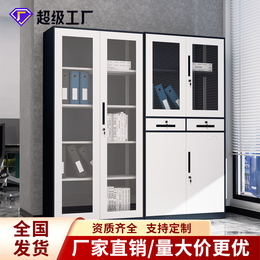 オフィスファイルキャビネット鉄キャビネットオフィスロック付き錬鉄製ロッカースチール防塵本棚ガラスドアファイルキャビネット