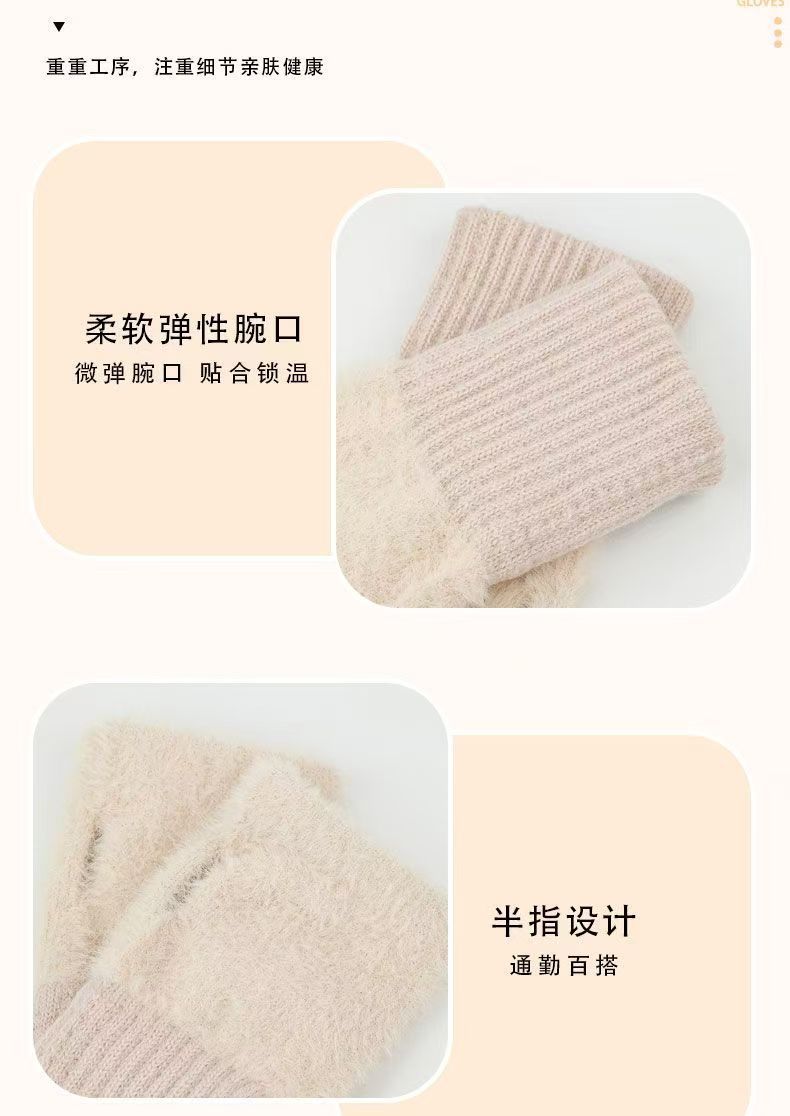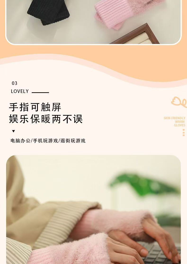 秋冬保暖防寒手套女ins仿貂毛百搭毛绒气质可爱办公半指学生手套