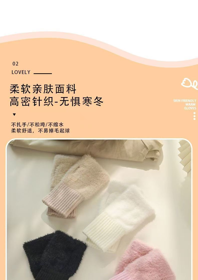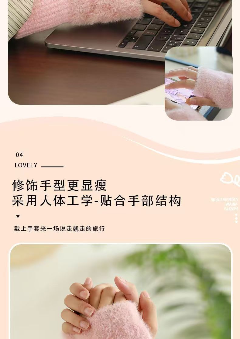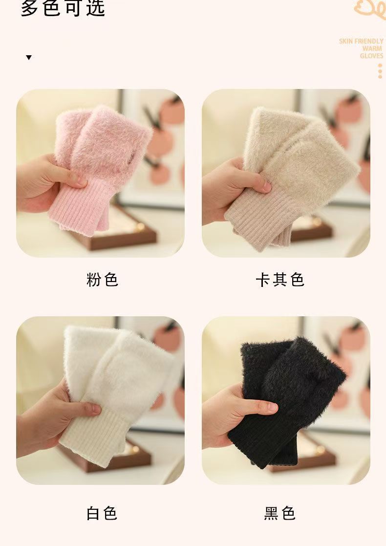 水貂绒毛绒学生手套保暖防寒手套女冬天女ins黑白色可爱办公半指