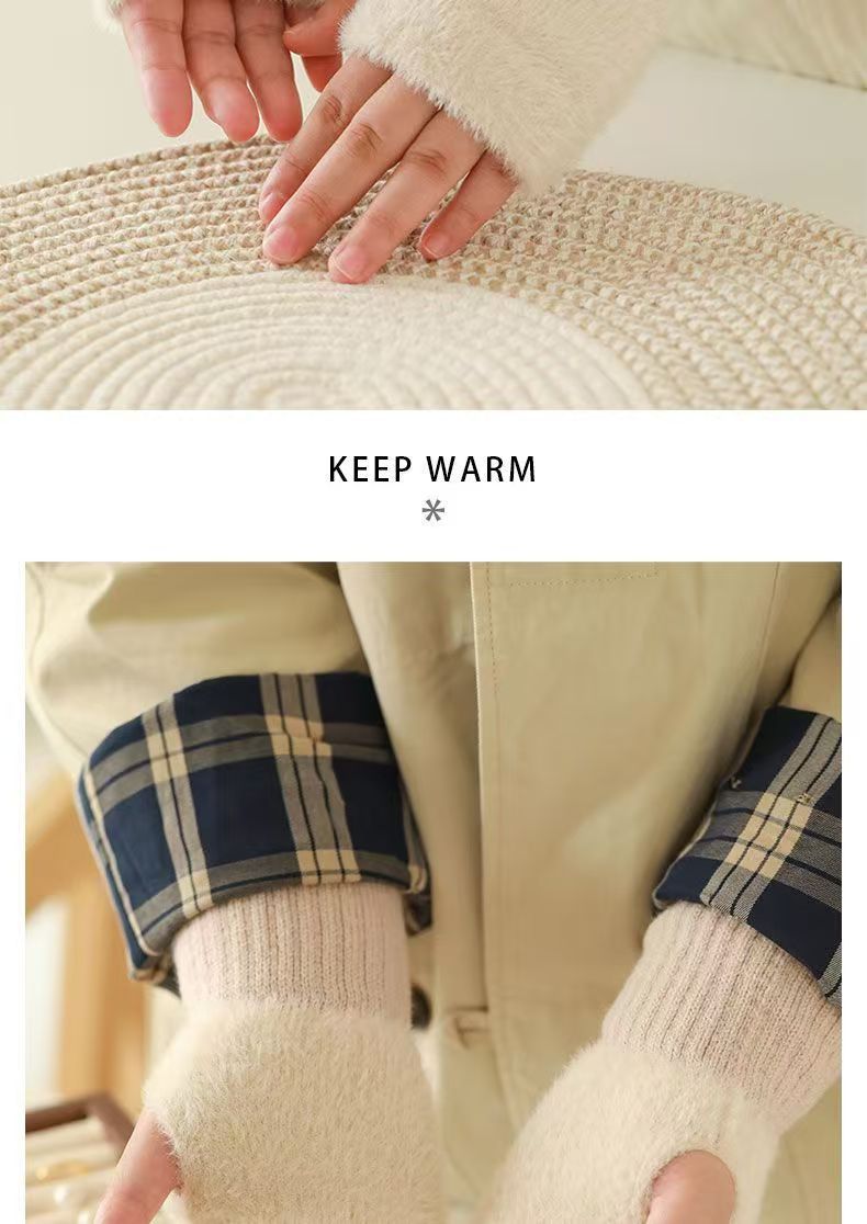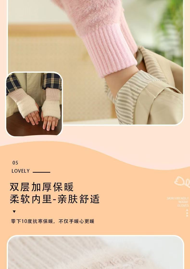 秋冬暖かい防寒手袋女性イン韓国語版多用途ぬいぐるみ気質かわいいオフィスハーフフィンガー学生手袋