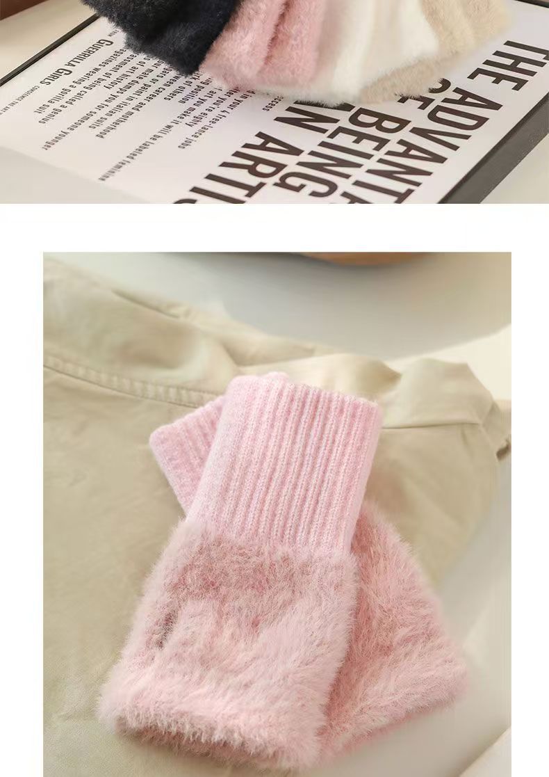 网红款针织无指手套女百搭半截半指保暖秋冬手袜学生纯色毛绒手套