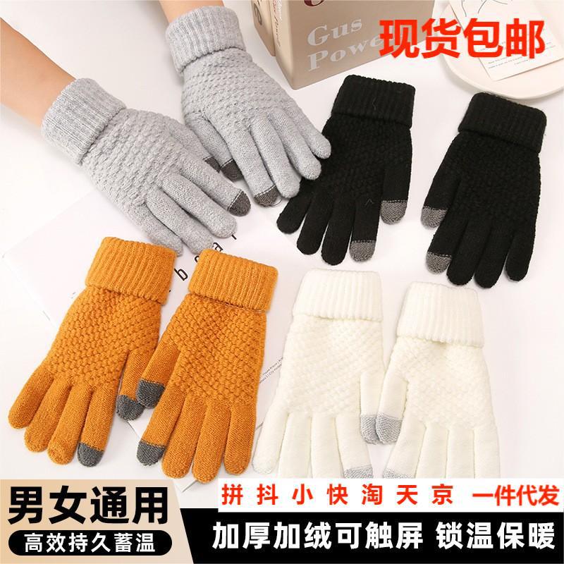 手袋の女性は冬にベルベットを厚くして韓国版の防寒かわいい自転車に乗ってタッチパネルの保温毛糸ニット手袋卸売りをした