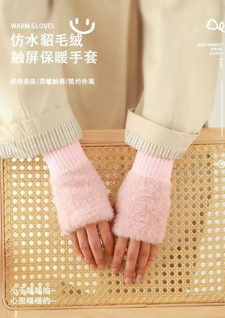 秋冬保温防寒手袋の女性insはミンクの毛をまねてぬいぐるみの気質が可愛いです。