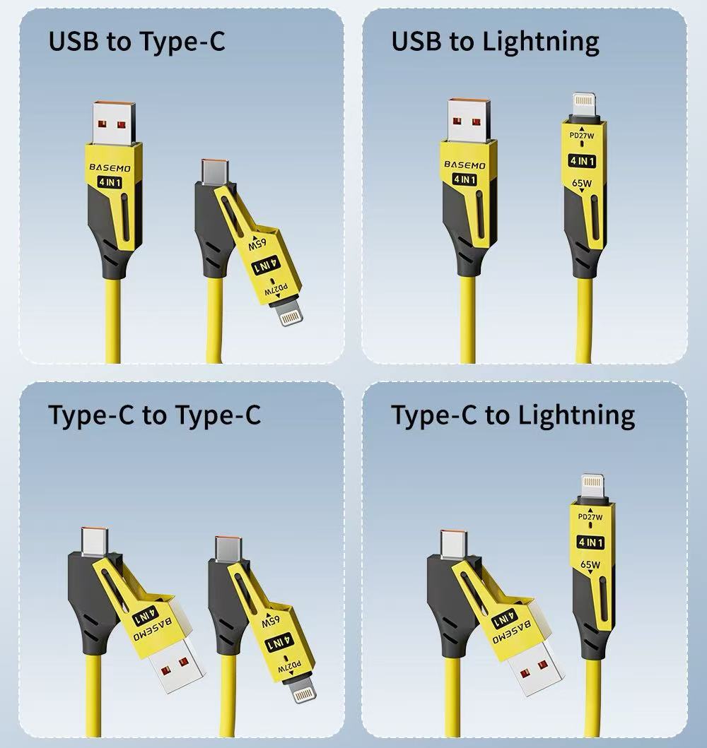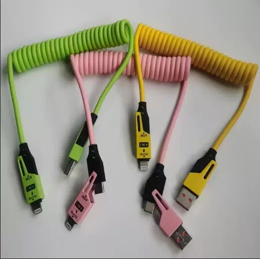 新品上架,65W弹簧四合一 PD 超级快充数据线,锌合金外壳,弹簧自由收纳,欢迎订购