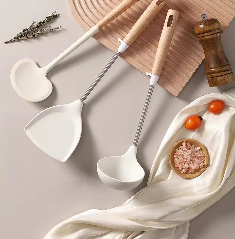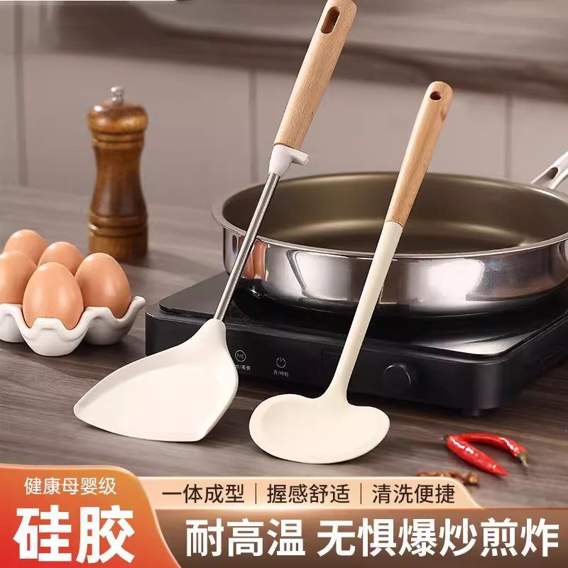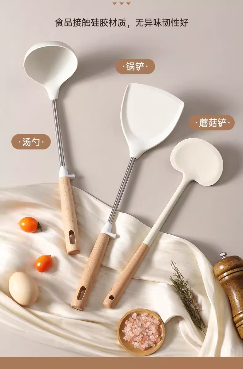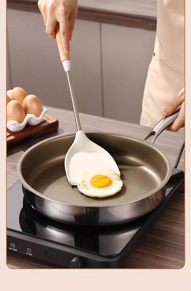 304 ステンレス鋼シリコンキノコスパチュラスパチュラスプーン木製ハンドルスパチュラ拡大深さシリコンスパチュラスプーン