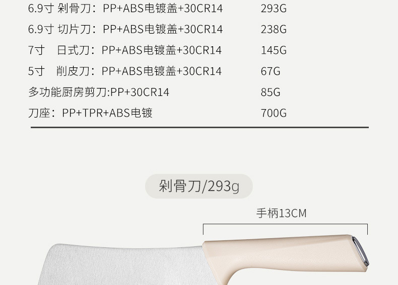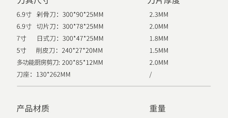 仕様 楽荘ナイフ6点セット,Lechuang Knives-6.9inch 骨切りナイフ,Lechuang Knives-6.9inch スライスナイフ,Lechuang Knives-6.9inch レディース スライスナイフ,楽荘包丁-7inch 和包丁,Lechuang Knives-5inch 果物ナイフ
