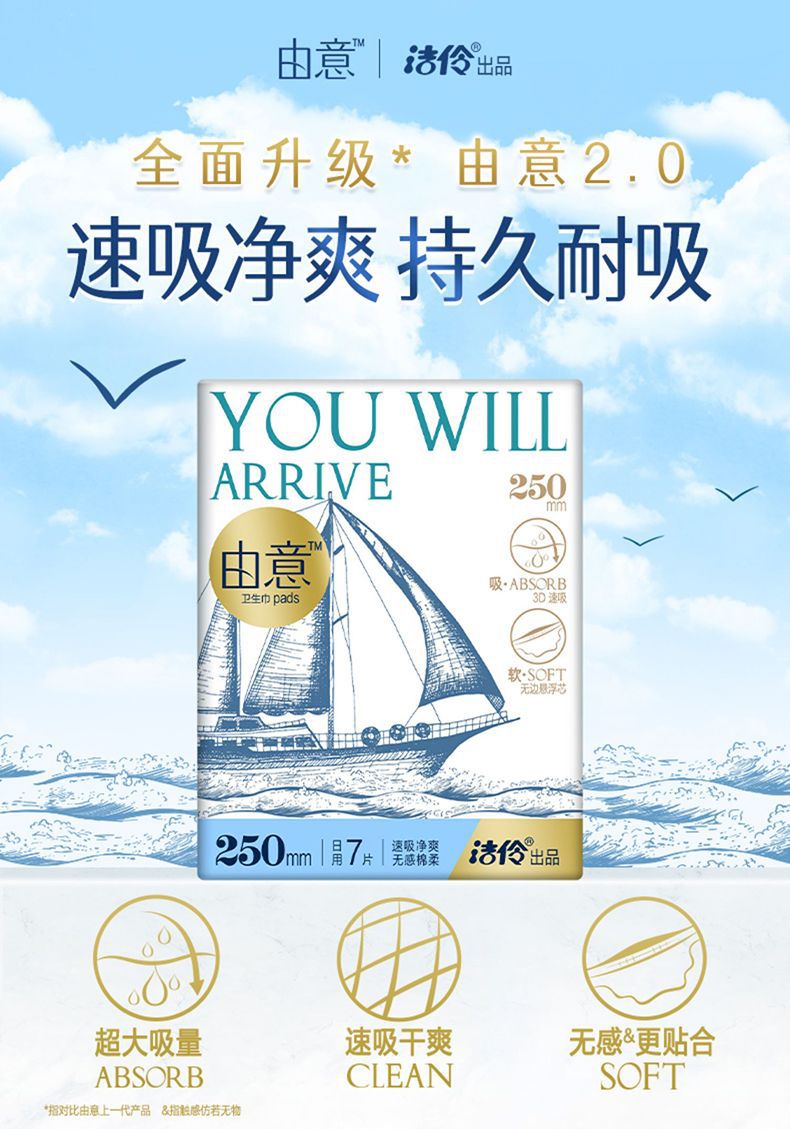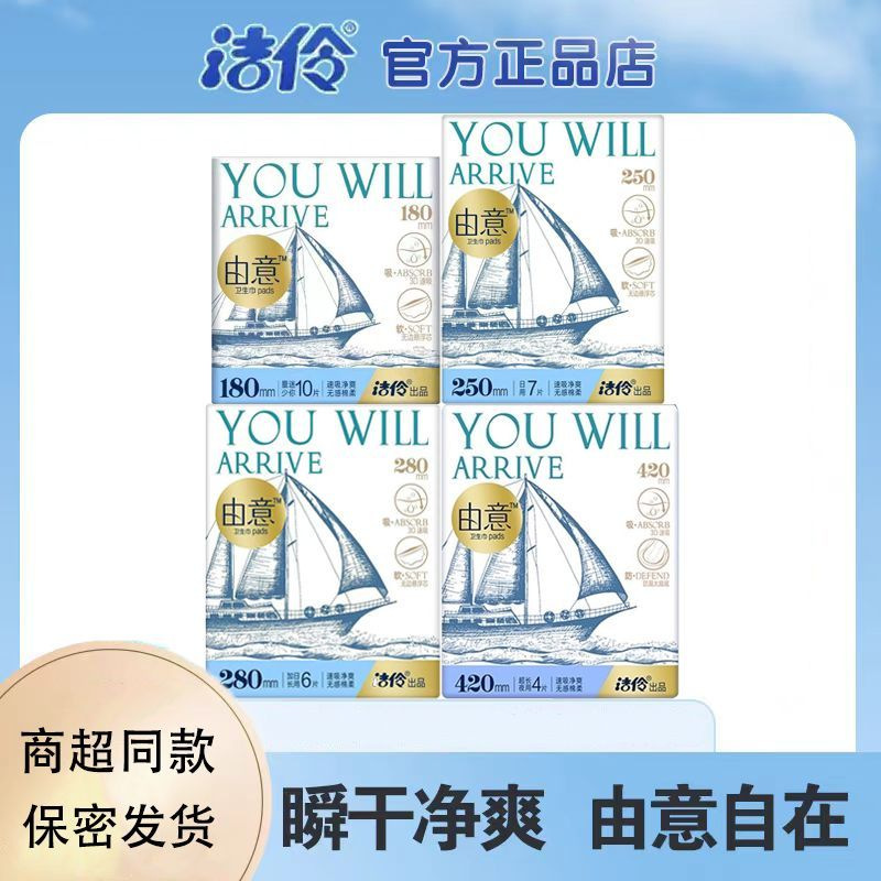 洁伶由意系列卫生巾日夜用瞬干净爽无感棉柔超透气姨妈巾正品防漏