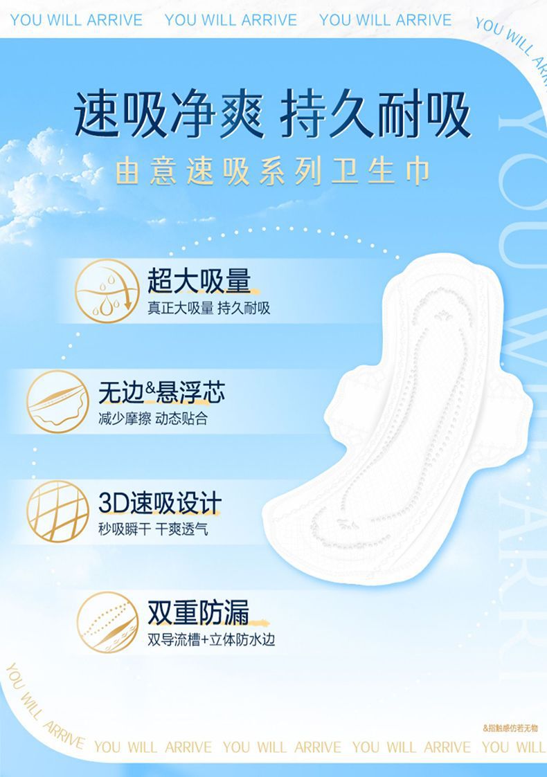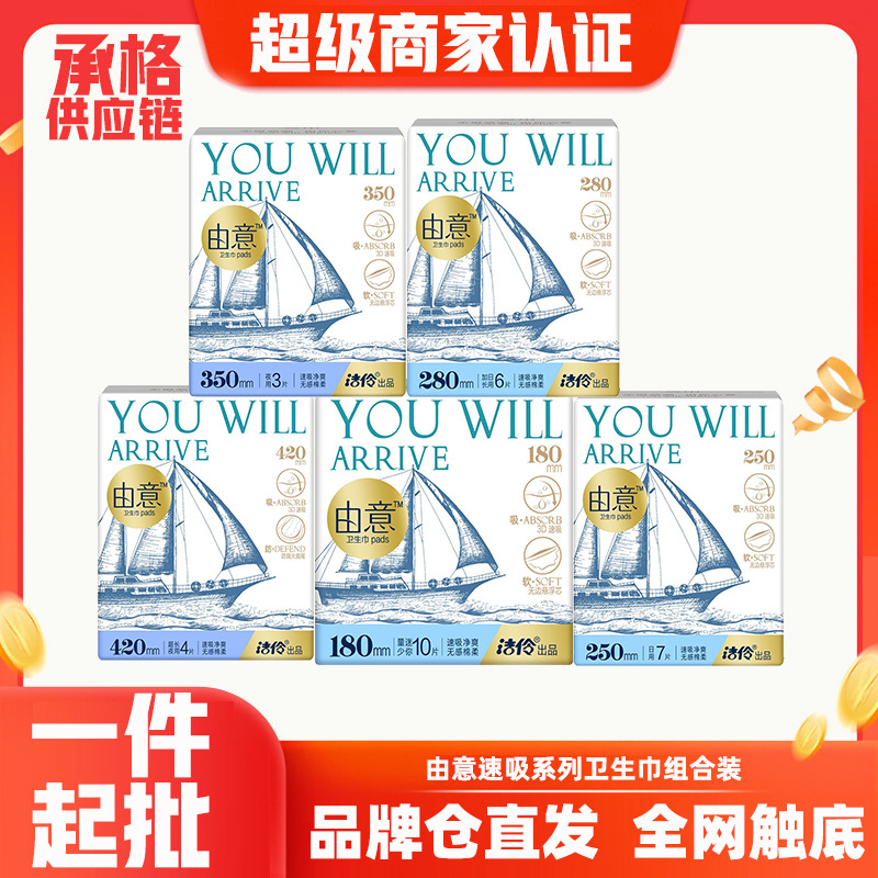 洁伶由意系列纯棉速吸净爽卫生巾日用夜用迷你护垫姨妈巾整箱批发