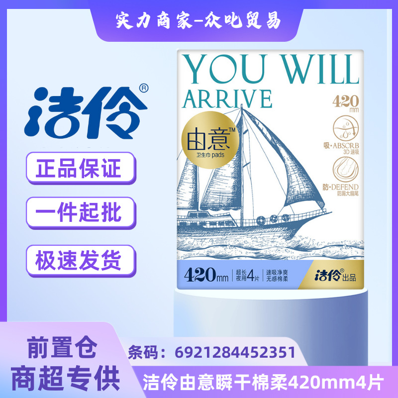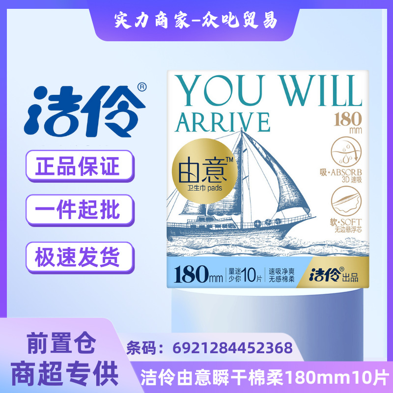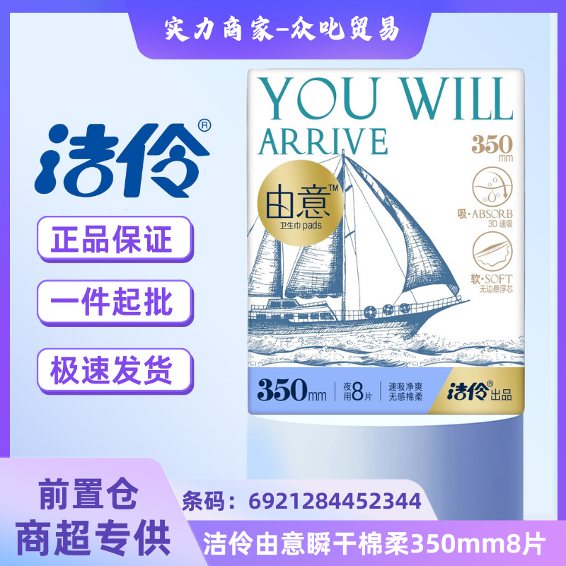 正品洁伶由意系列纯棉速吸净爽卫生巾日用夜用护垫姨妈巾整箱批发