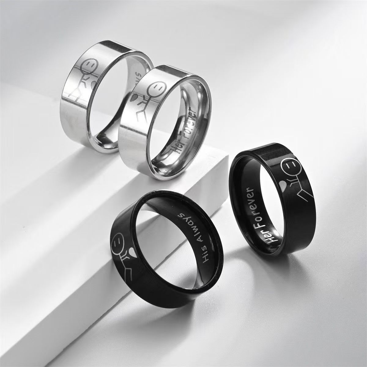 越境カップル向けステンレス製リング、軽奢で高級感のある電気メッキ、色褪せない、ファッショナブルな幾何学模様の丸型ペアリング、卸売