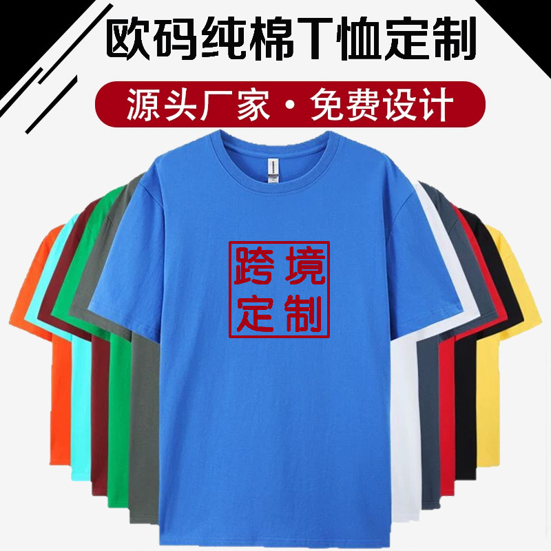 ヨーロッパコード純綿tシャツオーダーメードlogoクロスボーダー対外貿易ビッグサイズ作業班服ファッションブランド丸首半袖広告シャツtシャツ