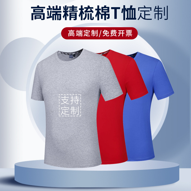 高級コーマ綿スパンデックスTシャツ、広告シャツ、カスタムロゴラウンドネック半袖文化シャツ、プリント入り企業作業服。