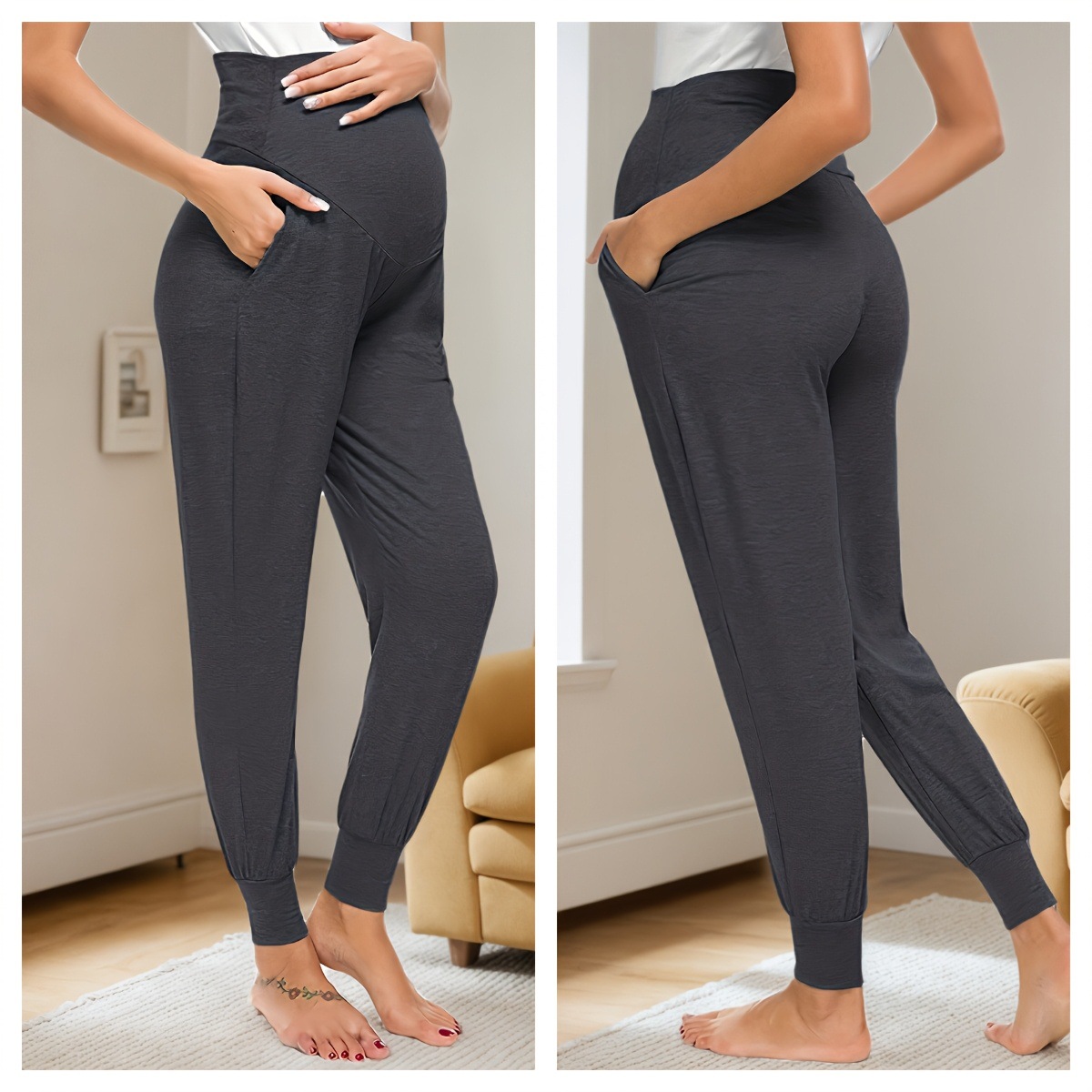 ポケット付きハイウエストマタニティヨガパンツ ソフトで伸縮性あり