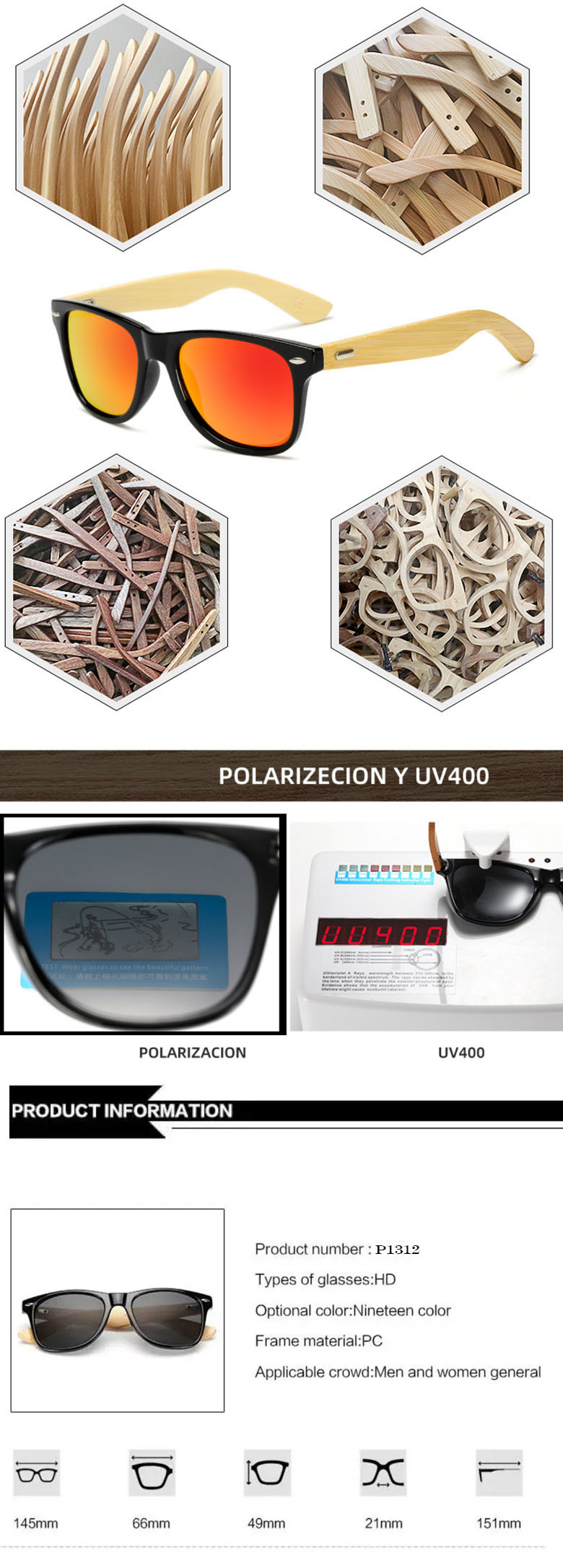 新しいスタイルの米釘環境に優しいパーソナライズされた毛竹脚偏光サングラス手作り米釘サングラス 1501