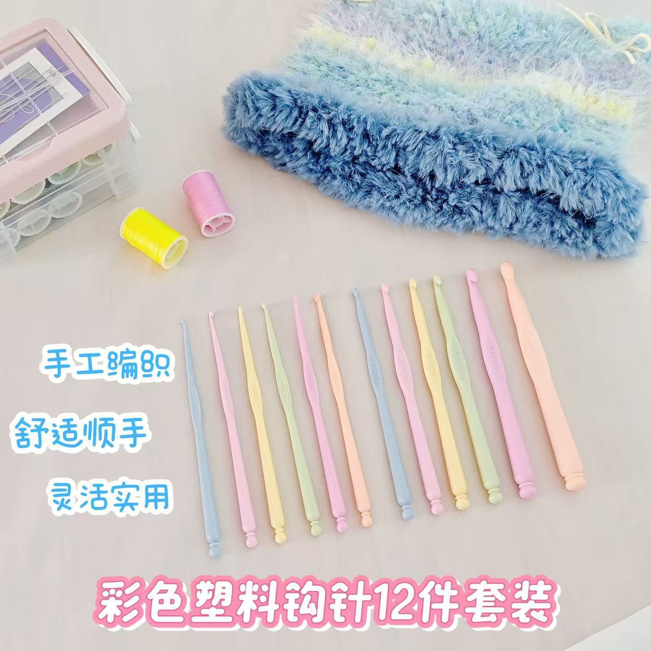 ウールニットプラスチックかぎ針編みプラスチックカラフルなかぎ針編み DIY 編み物かぎ針編みツール 12 個セット
