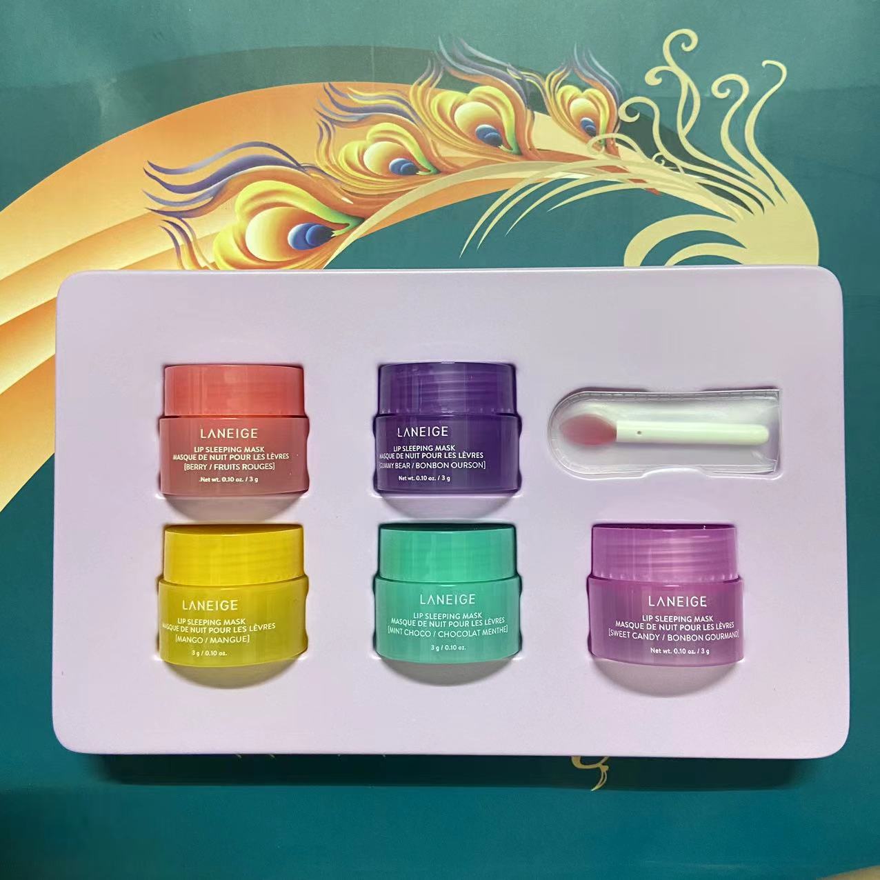 韓国蘭のリップマスクストロベリーシリーズリップマスクリップクリームサンプル3g 5点セットリップマスクリップクリーム保湿の新バージョンを越境で販売