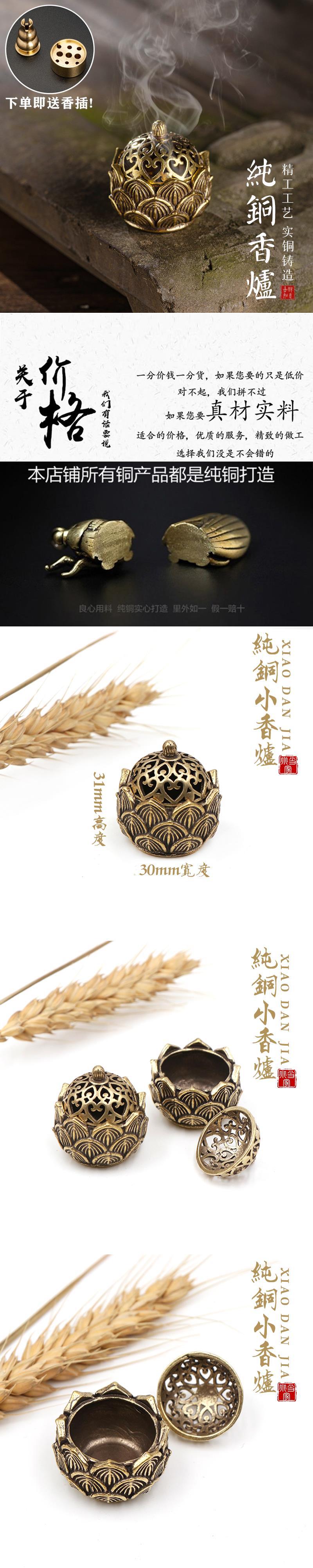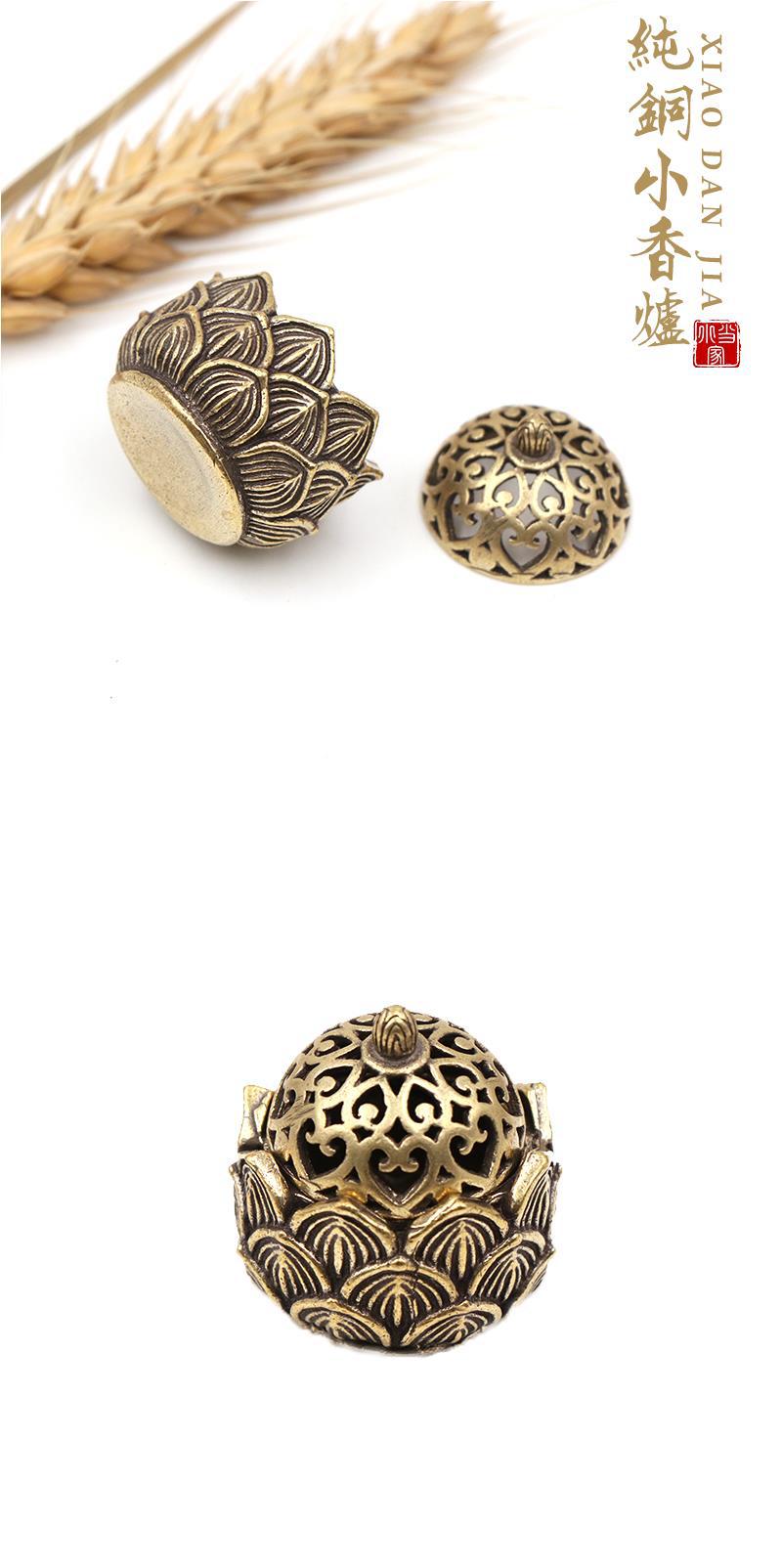 ミニ中空真鍮蓮香炉装飾品真鍮微細彫刻小さな銅炉ハンドピース香立てアンティーク銅製品