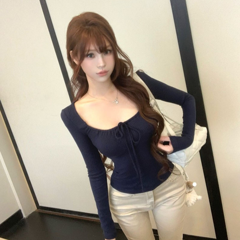 y2k アメリカンレトロホットガール長袖 tシャツ女性のための初秋 2025 新しいインナーレイヤリングシャツスリムウエストトップ