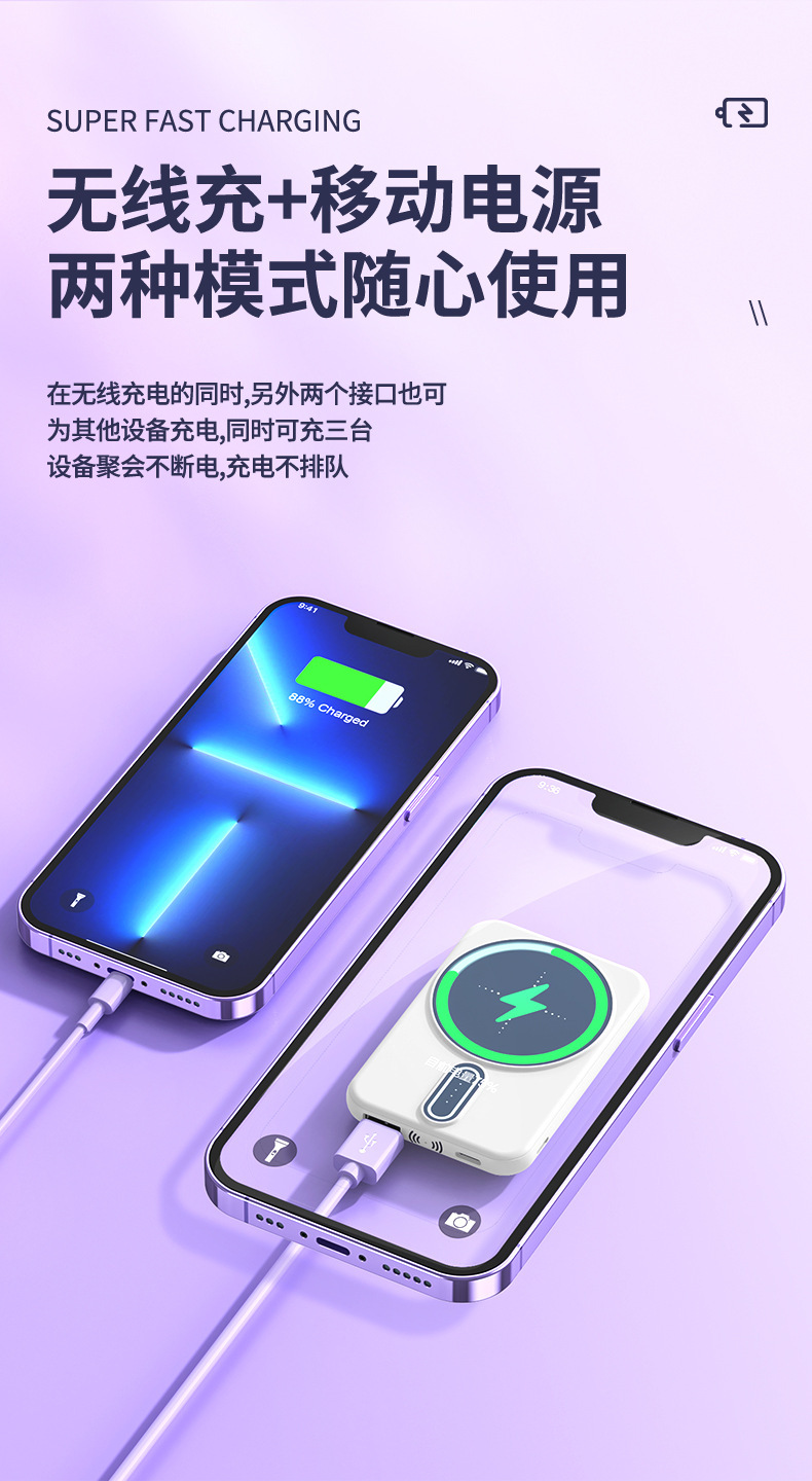 ミニ5000ミリアンペアマグセーフ磁気吸引無線充電宝携帯小型プレゼントモバイル電源卸売り