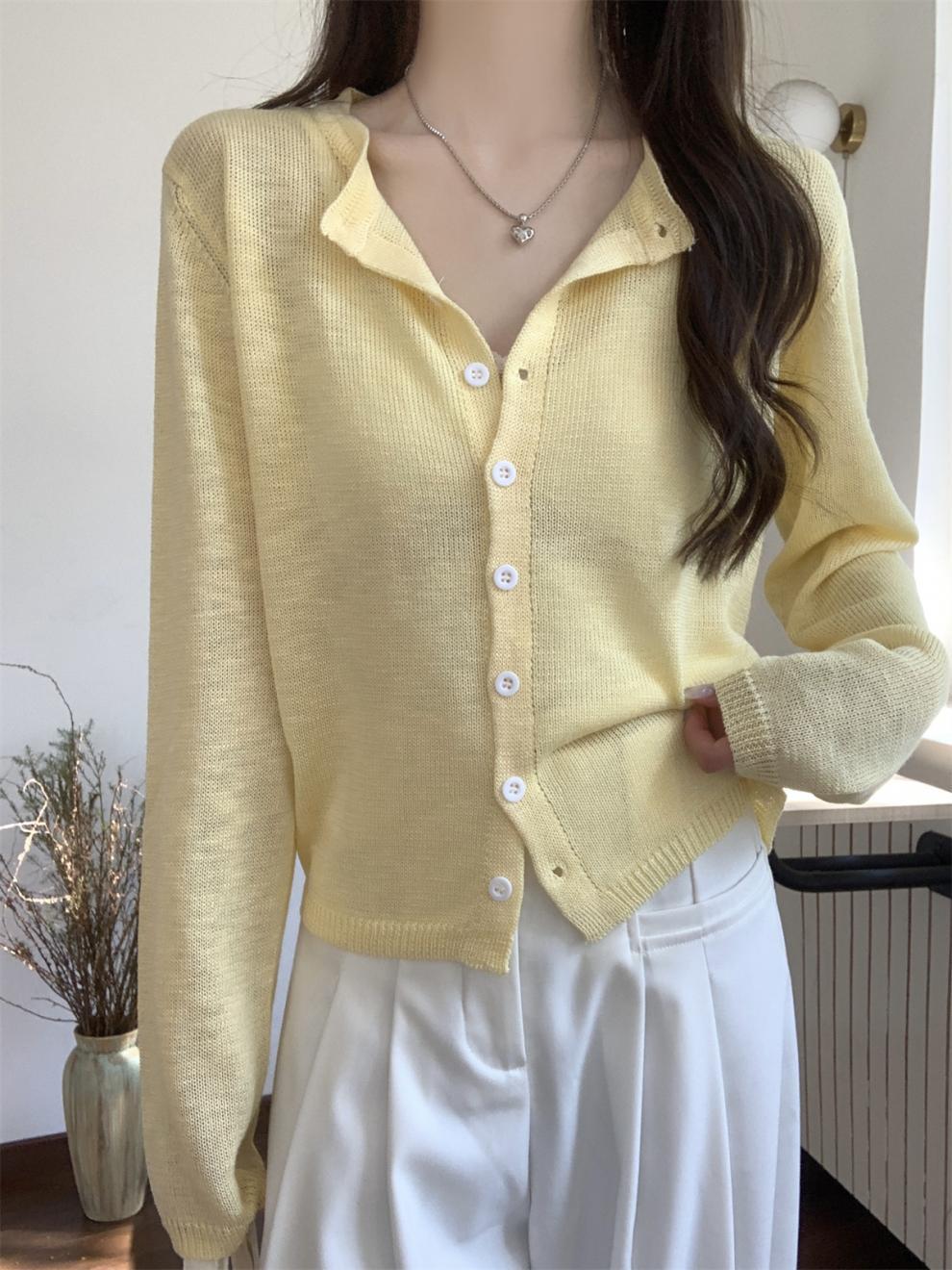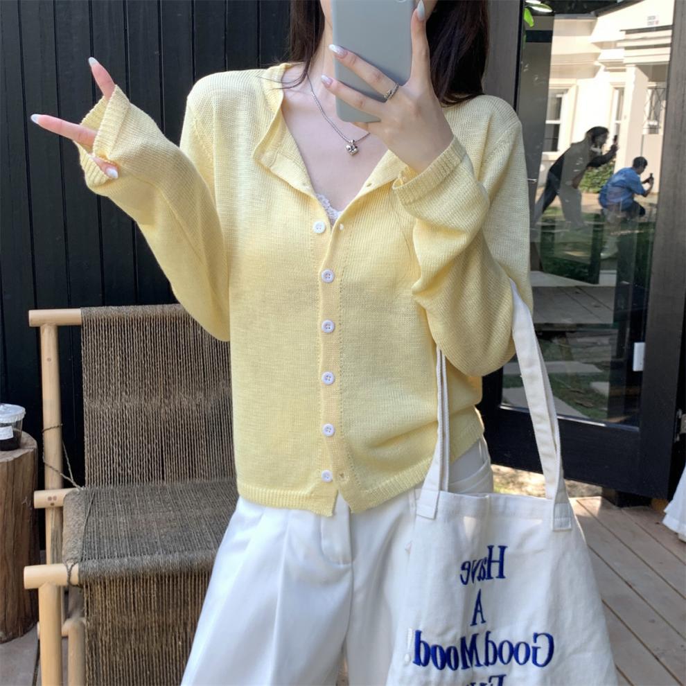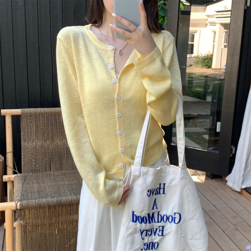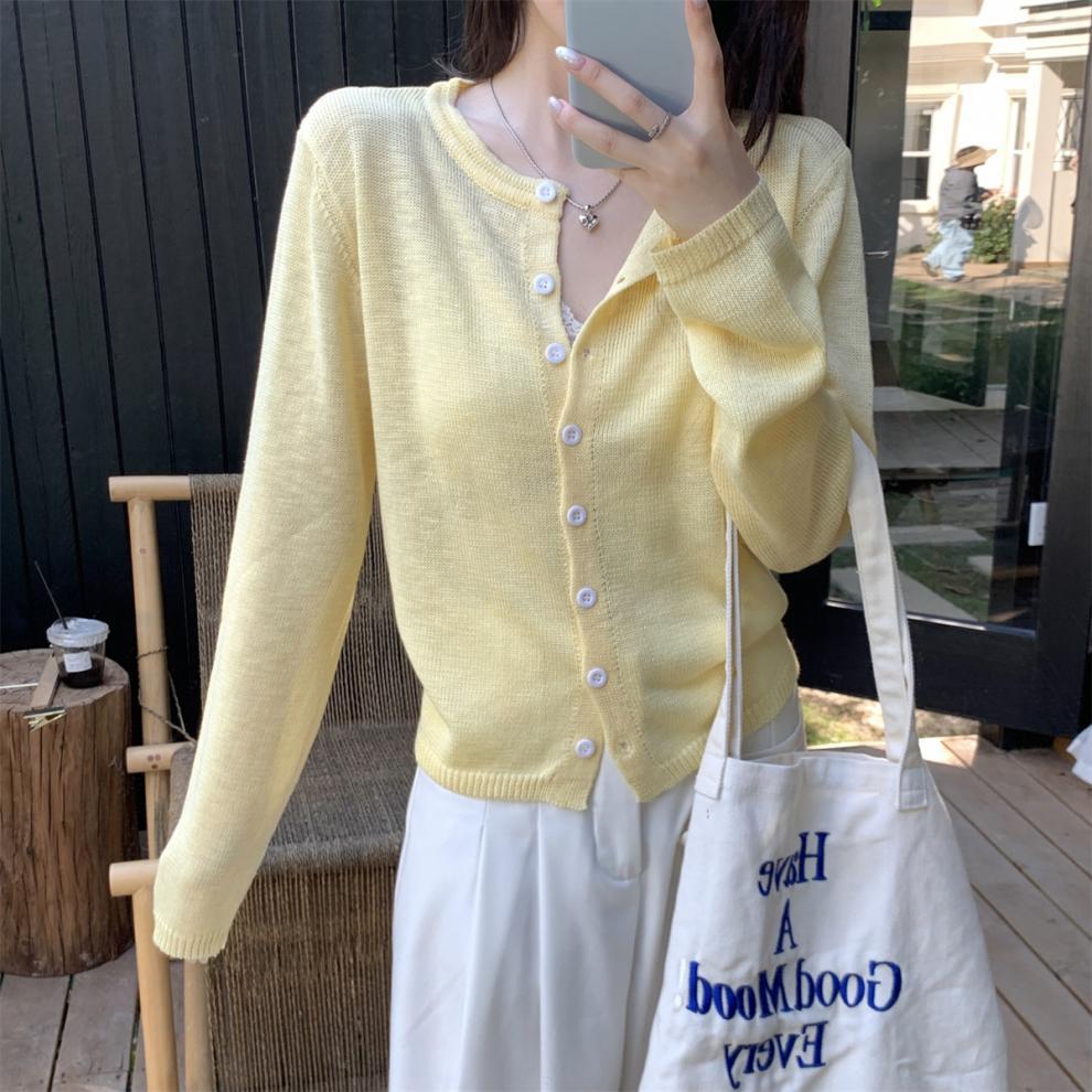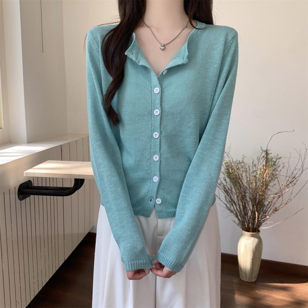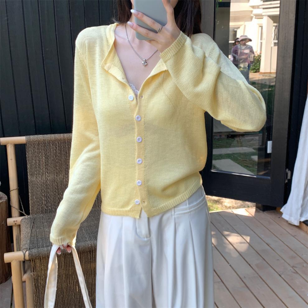 実際の価格の夏の韓国スタイルのゆったりとした多用途のシングルブレスト竹麻セーター日焼け止めカーディガントップ