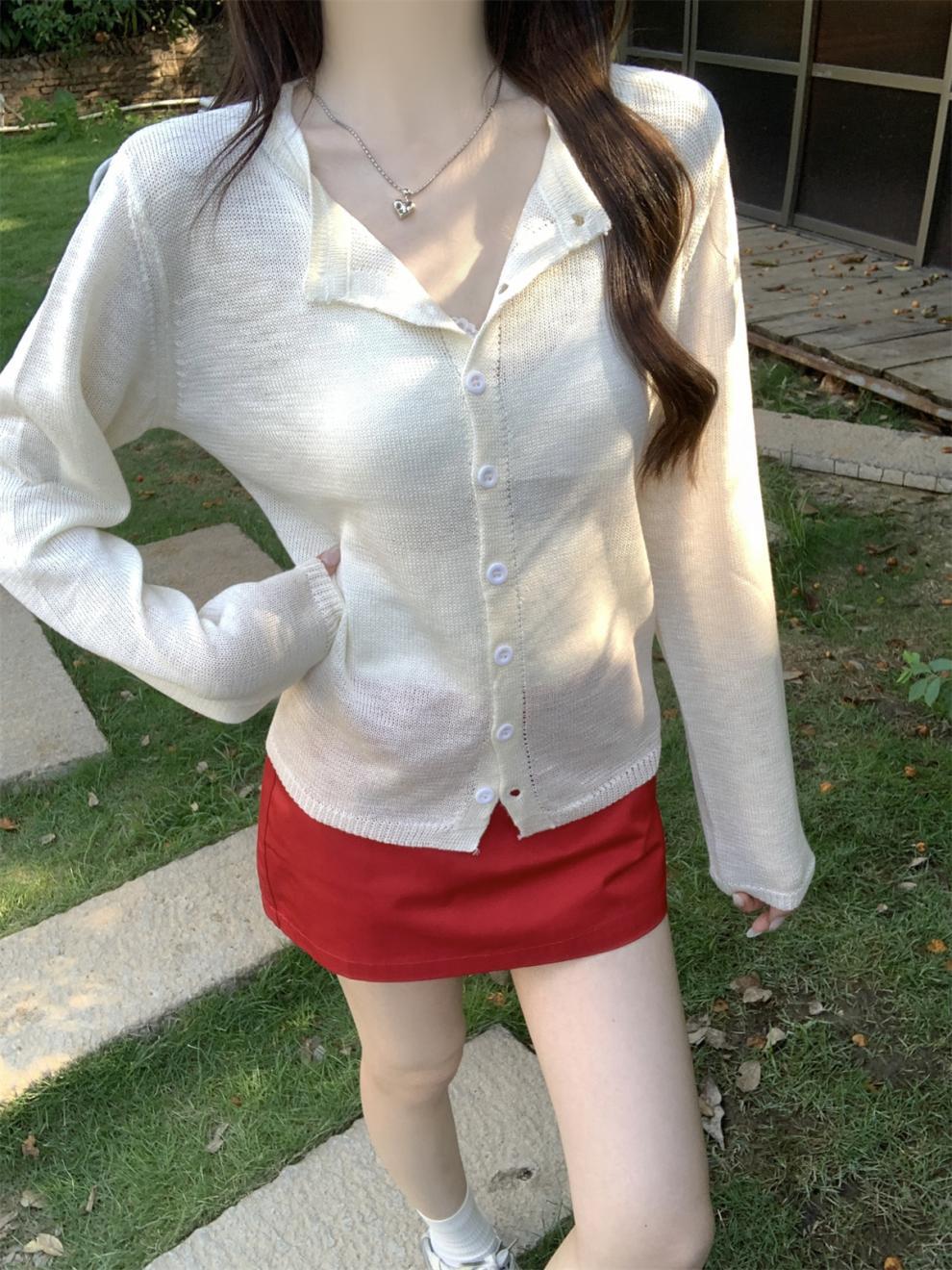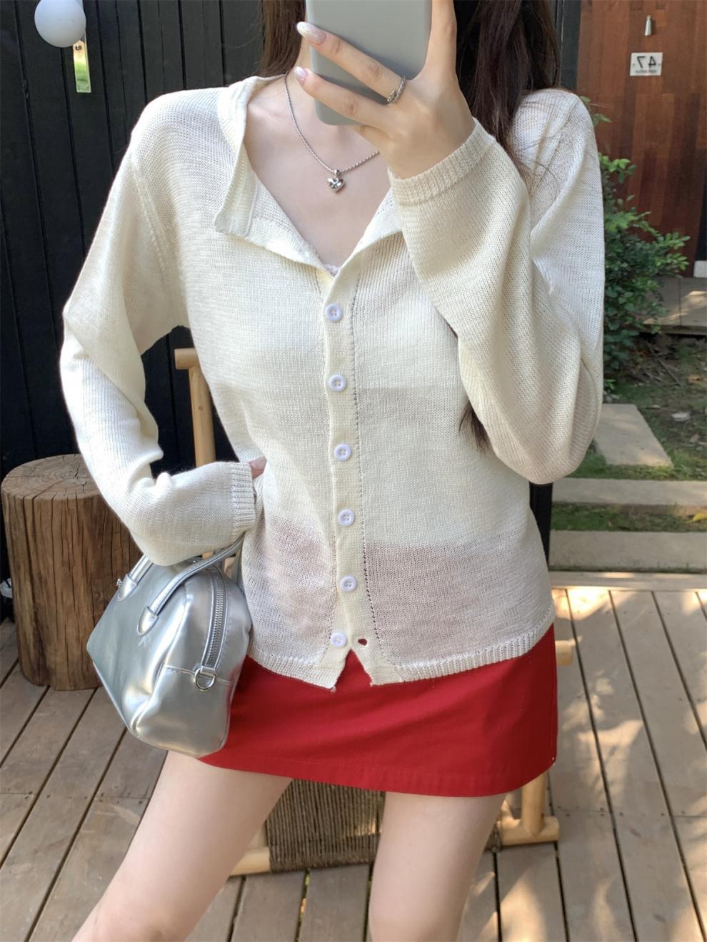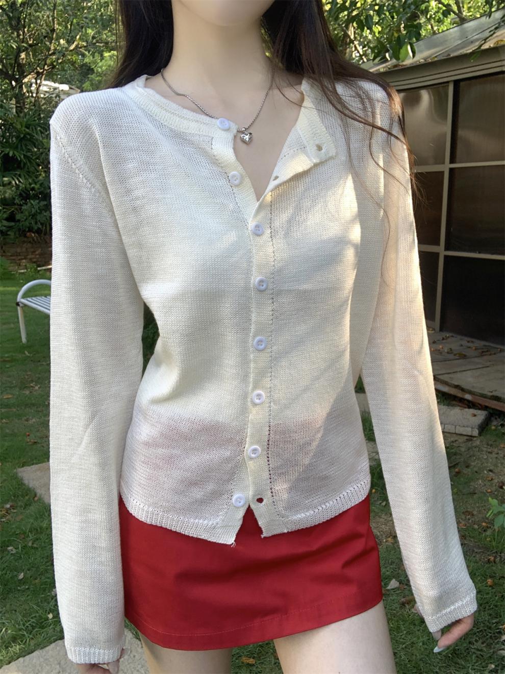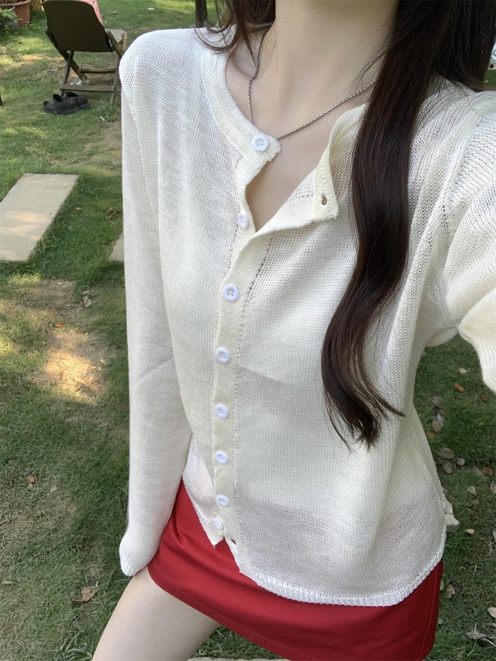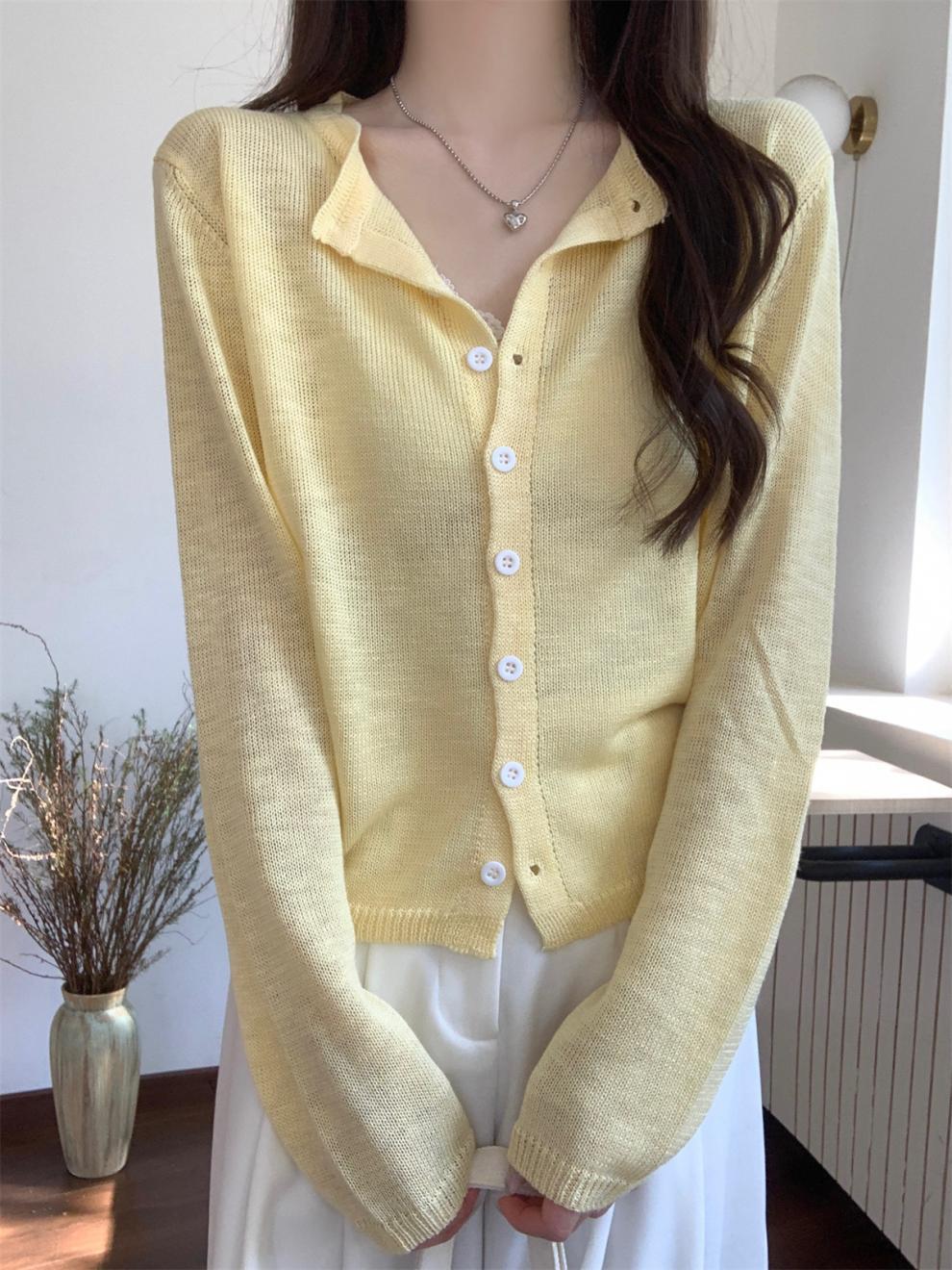 実際の価格の夏の韓国スタイルのゆったりとした多用途のシングルブレスト竹麻セーター日焼け止めカーディガントップ