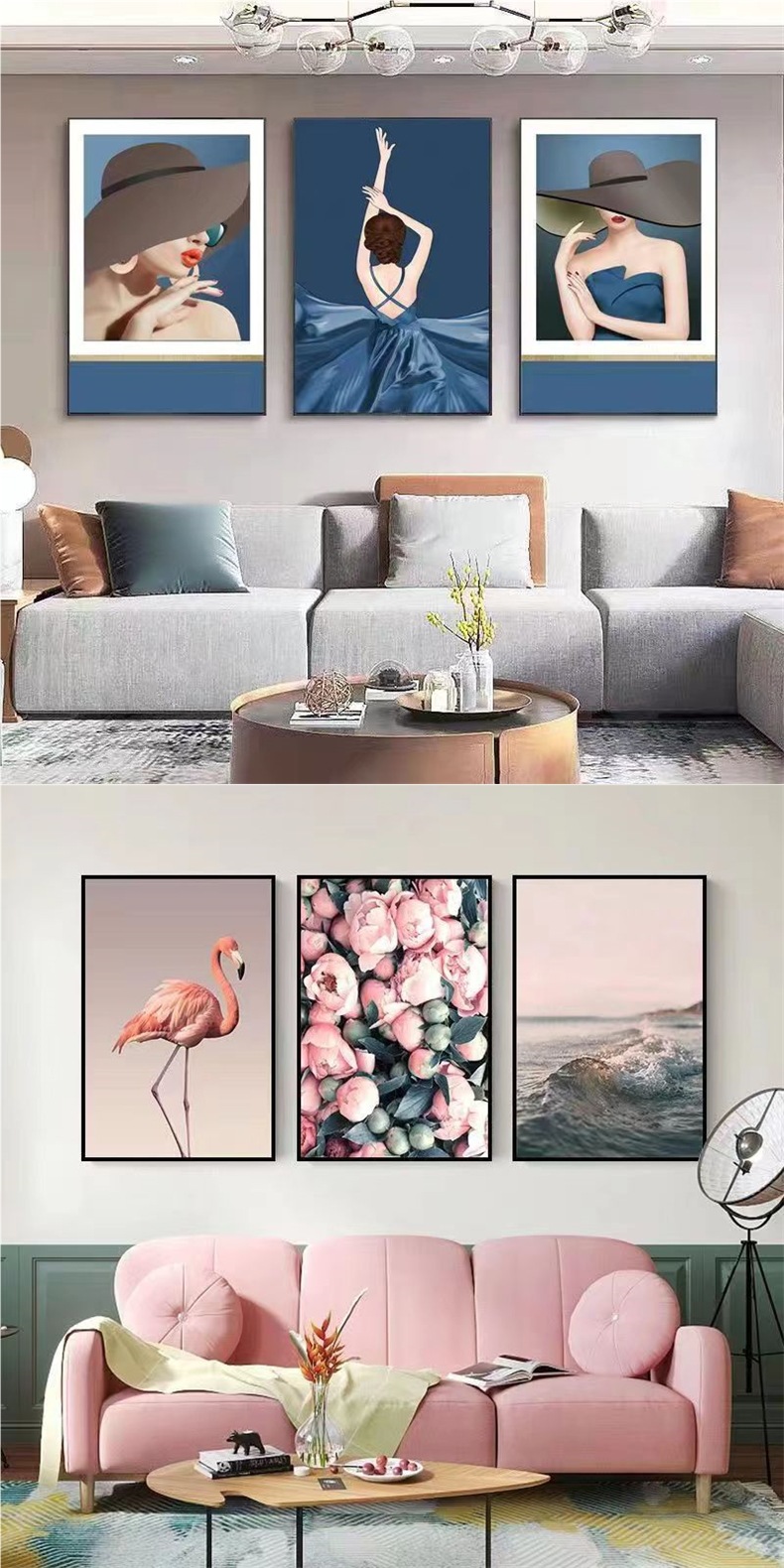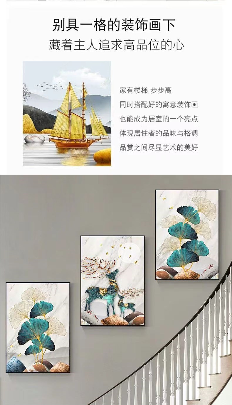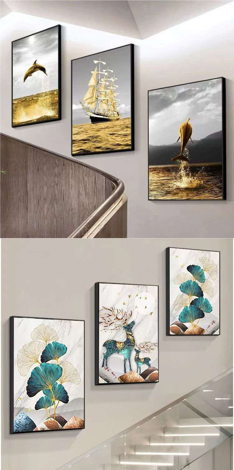 二重階段間装飾画モダンシンプル廊下三連吊り絵画リビングルーム玄関廊下通路壁画