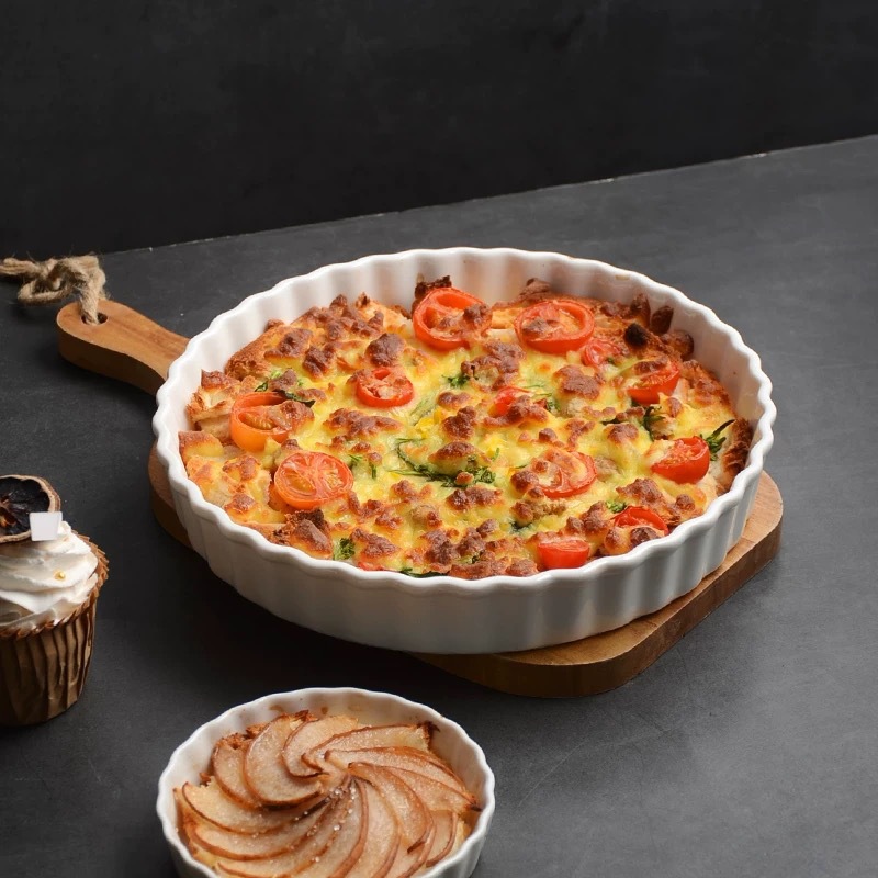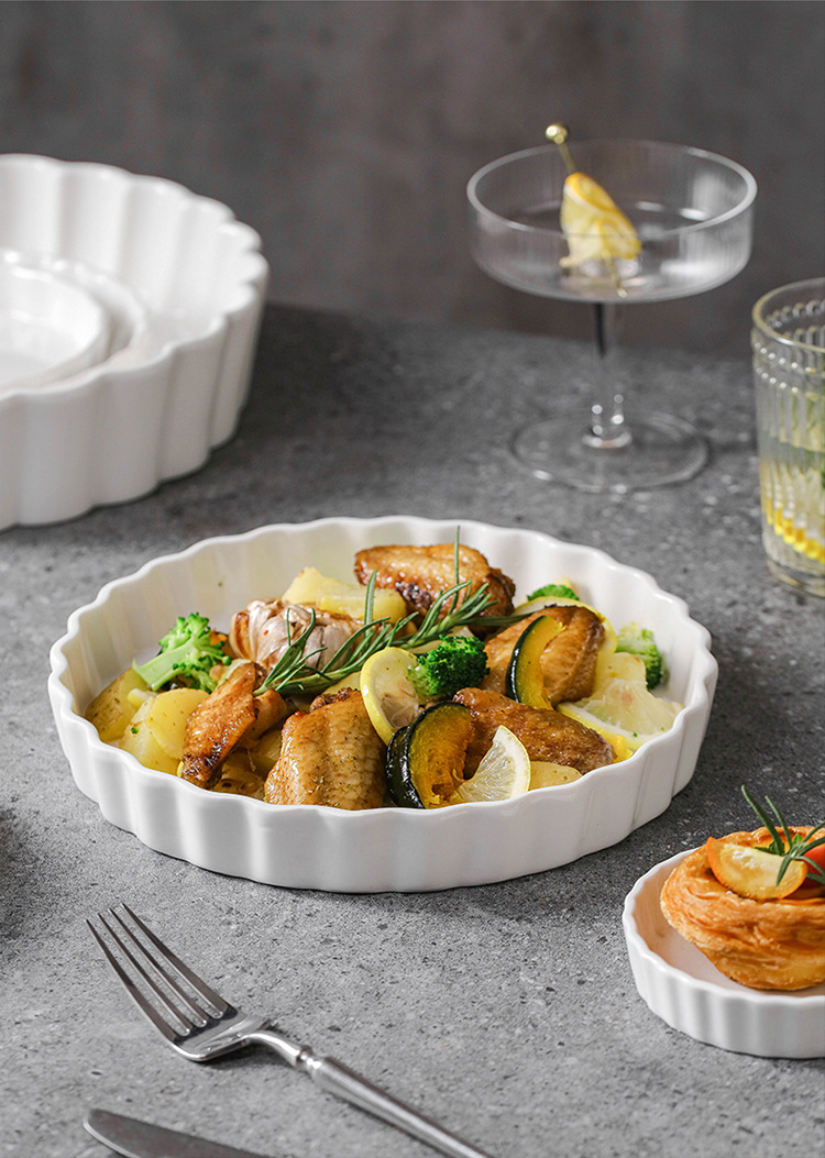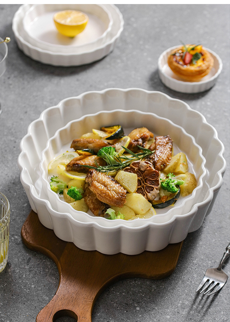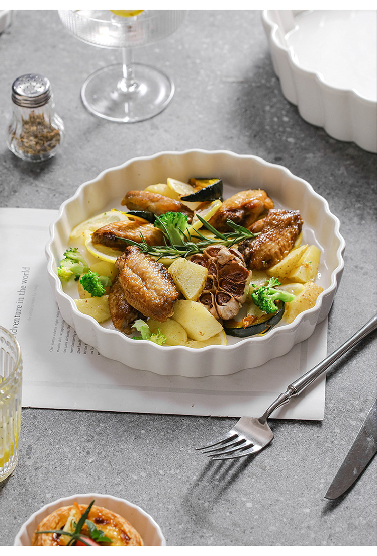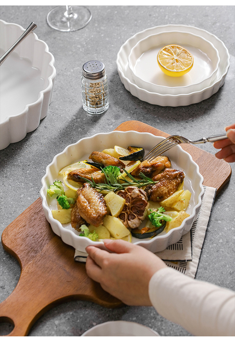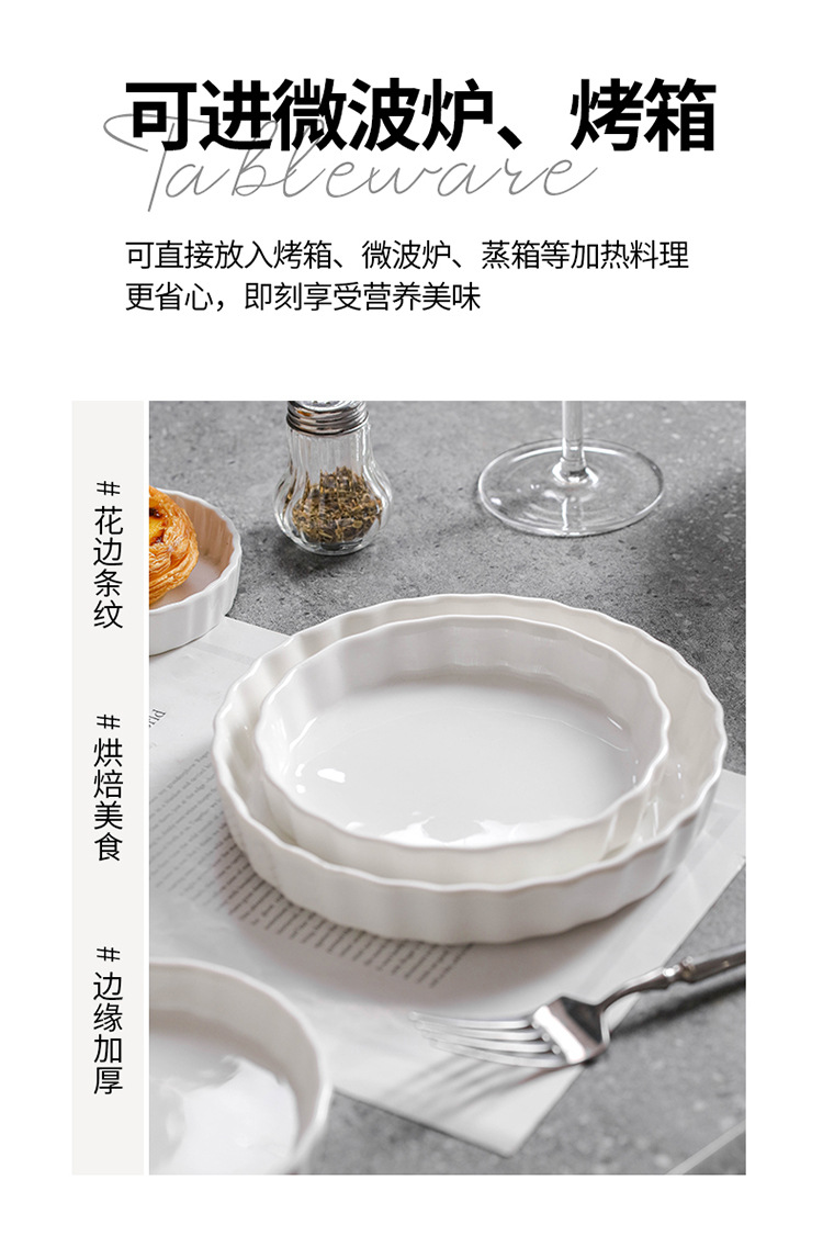 ラウンドパイプレートクロスボーダー高温耐性オーブン電子レンジ専用セラミックベーキングモールドスナックプレート洋食深皿