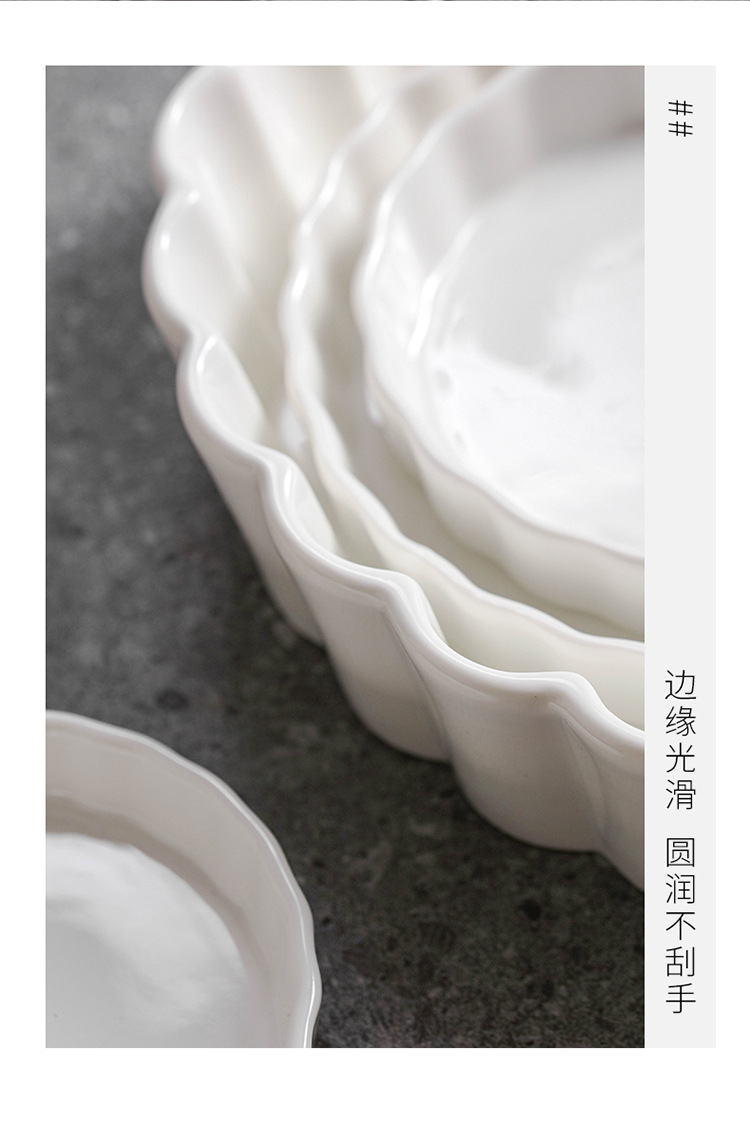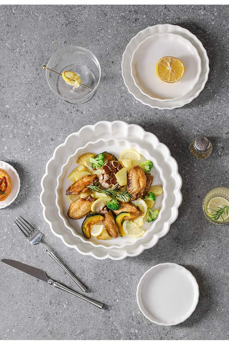 インスタ風レトロレリーフラインレースプレート純白セラミックプレートフレンチレリーフサイド洋食プレートデザート朝食皿
