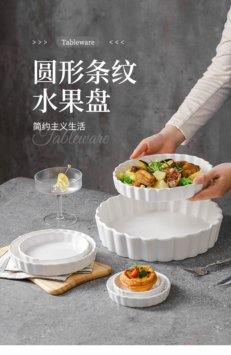 セラミックラウンドストライプベーキングパンチーズ焼きライスプレート家庭用フルーツスナックプレートアフタヌーンティースナックプレートピザプレート
