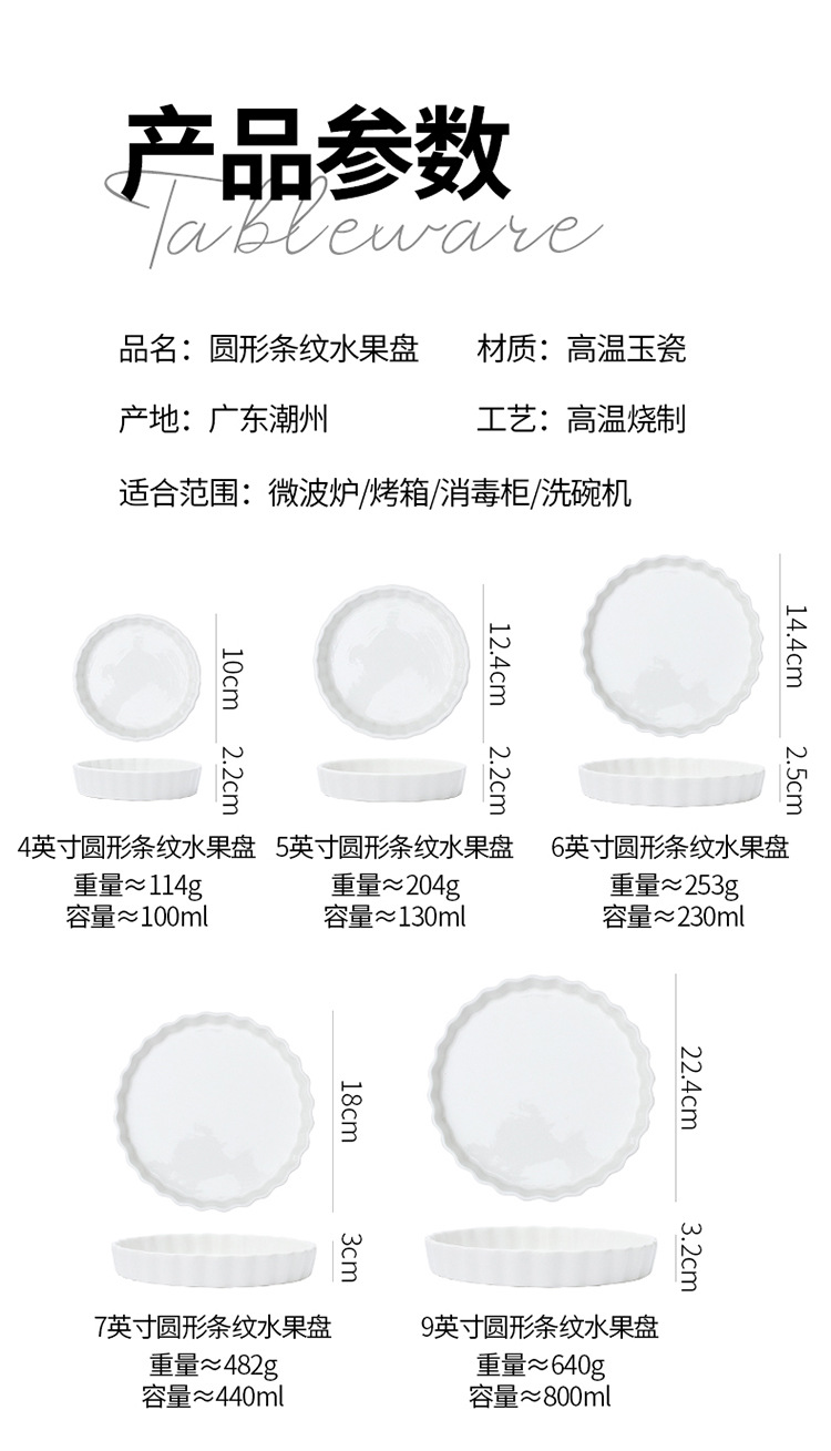 颜色 5英寸圆形条纹水果盘,7英寸圆形条纹水果盘,9英寸圆形条纹水果盘,11英寸圆形条纹水果盘