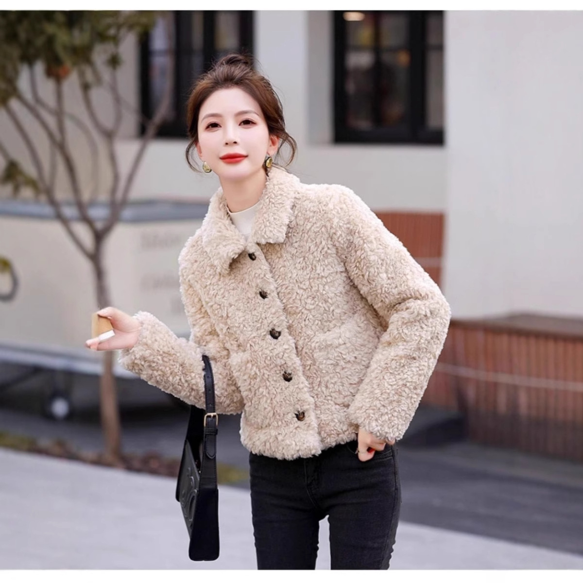 秋冬新款防羊毛卷卷一体外套2025新款保暖短款百搭气质款大码9533