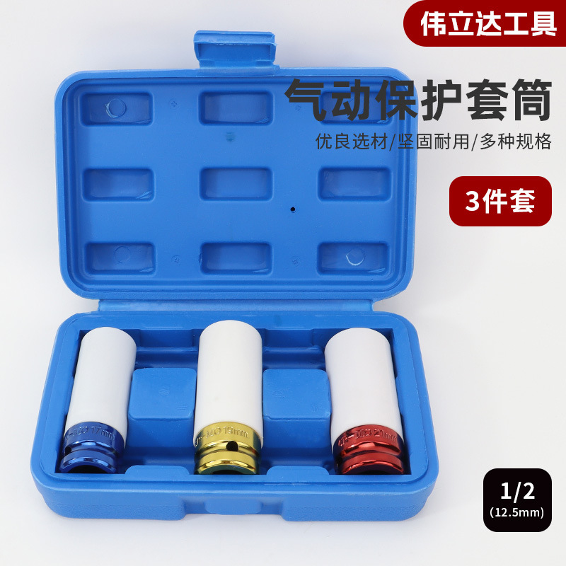 现货供应3pc彩色套筒3件套轮胎保护套汽动17/19/21mm1/2拆卸