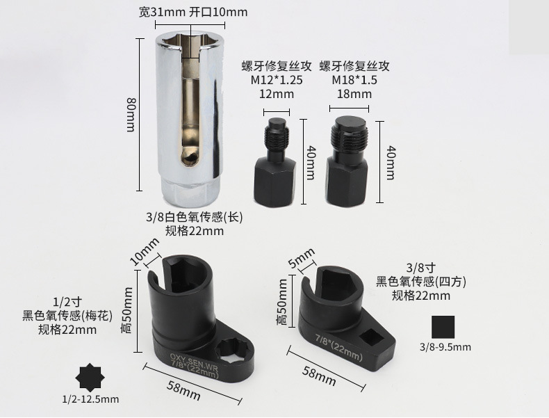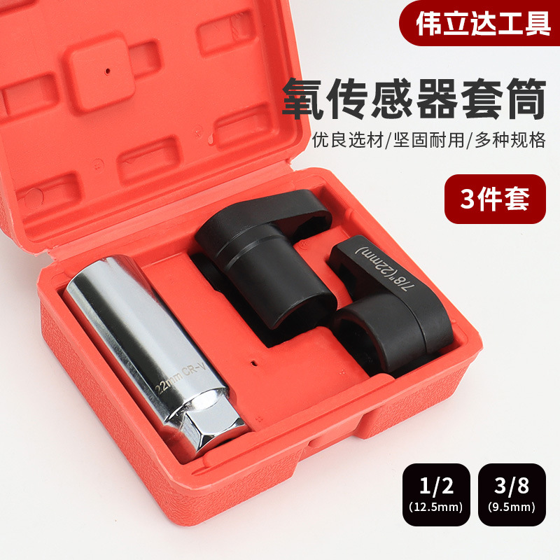 现货供应3pc锰钢镀铬小口含氧传感器拆卸套筒黑色八角四角组合