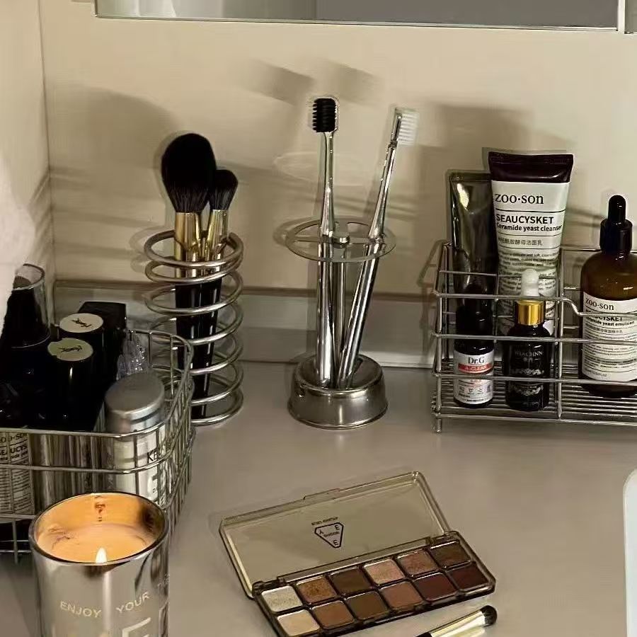 梳子置物架高级感化妆刷收纳筒卫生间浴室洗手台不锈钢牙刷收纳架