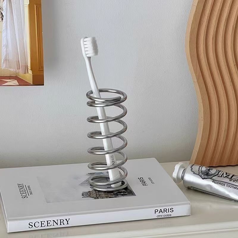 304ステンレスの歯ブラシの棚シンプルな置物棚化粧ブラシ収納筒創意スプリング歯ブラシホルダー収納棚