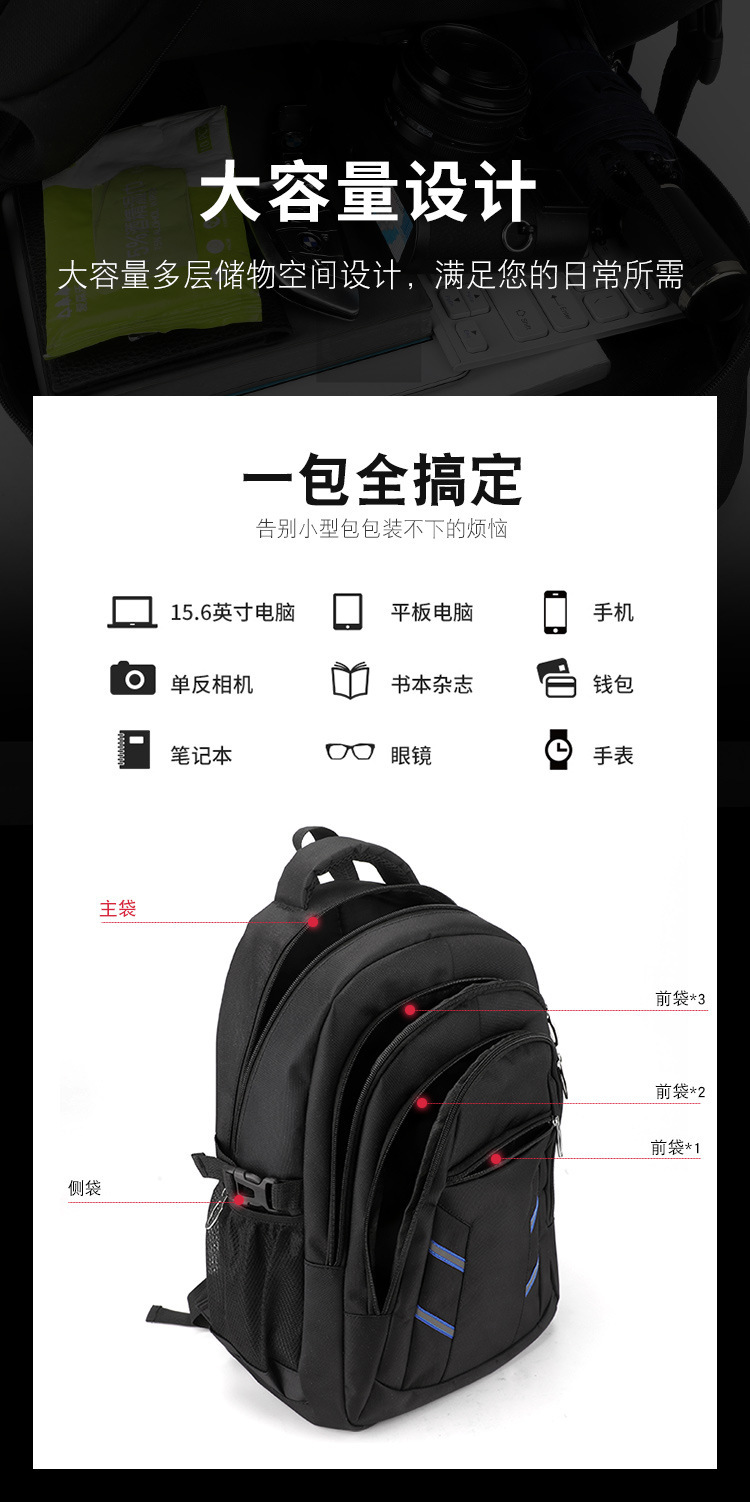 男性と女性のためのクロスボーダーバックパック、大容量カジュアルスクールバッグ、新しい防水オックスフォード布ビジネスメンズバックパックコンピュータバッグ