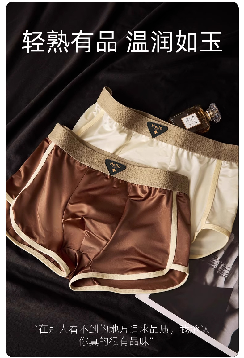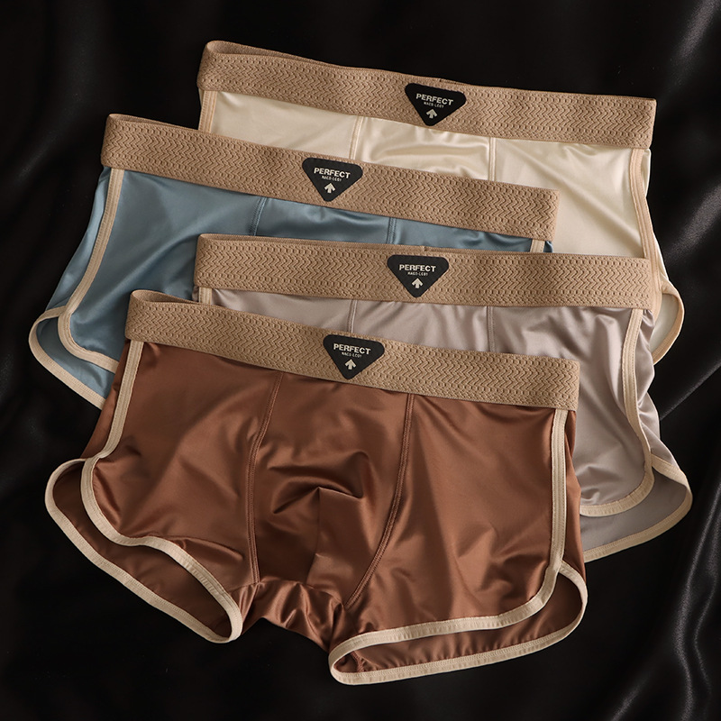 轻奢缎面冰丝男士内裤夏季新款超薄透气抑菌平角裤凉感青年四角裤
