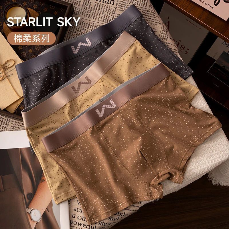 メンズパンツ男平角ズボン綿質星空プリント抗菌股通気中腰男子四角ズボン底ズボン