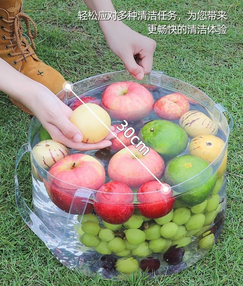 新款折叠便携水盆手提式户外旅行洗衣袋折叠盆户外便携透明洗菜盆