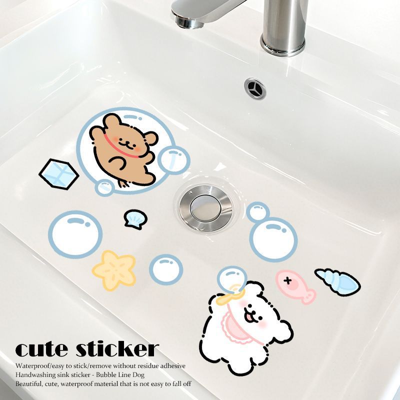 卡通kt猫卫生间浴室厨房瓷砖贴纸遮丑洗手台洗手池防水贴纸贴画