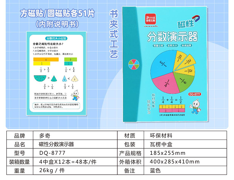 Duqi 磁気分数学習ディスク 3 年生から 6 年生までの数学教材磁気吸引小学校加算と減算磁気デモンストレーター