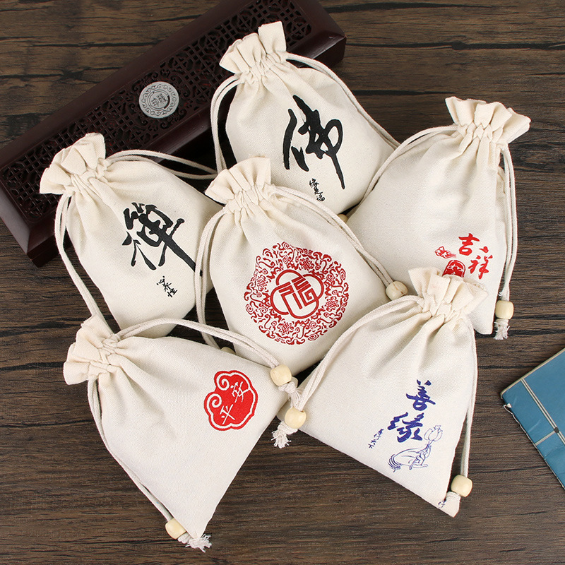 キャンバスバッグ紐引きポケット麻布袋寺院国風仏珠袋手串袋綿布袋収納袋アクセサリー袋