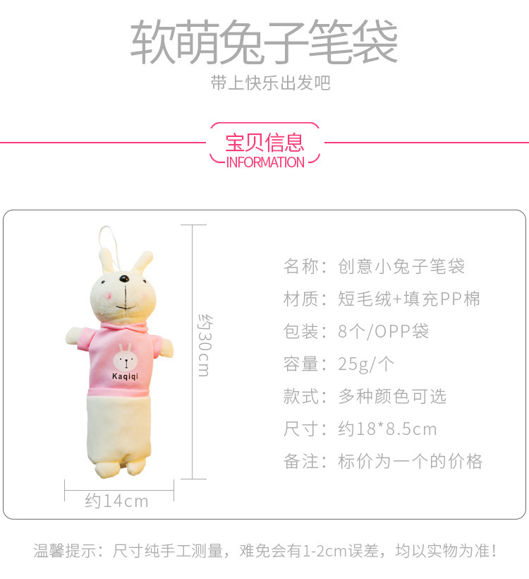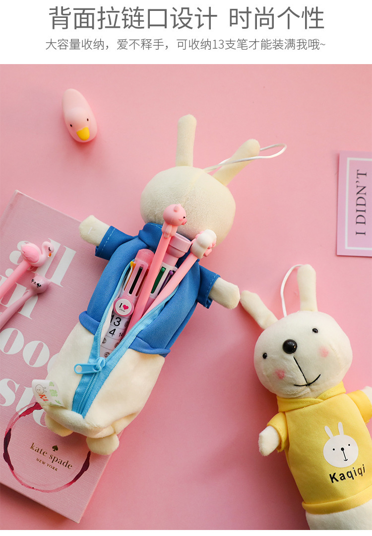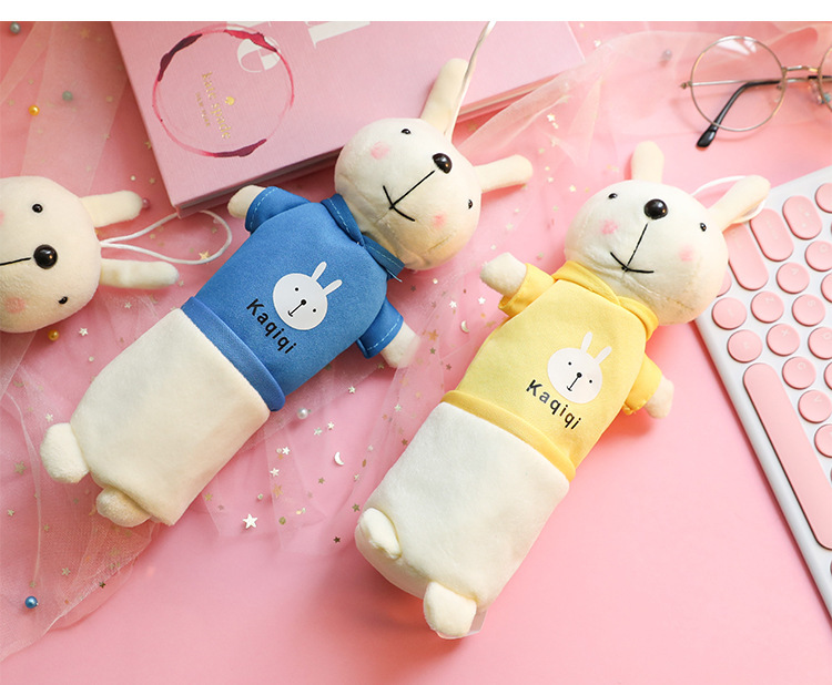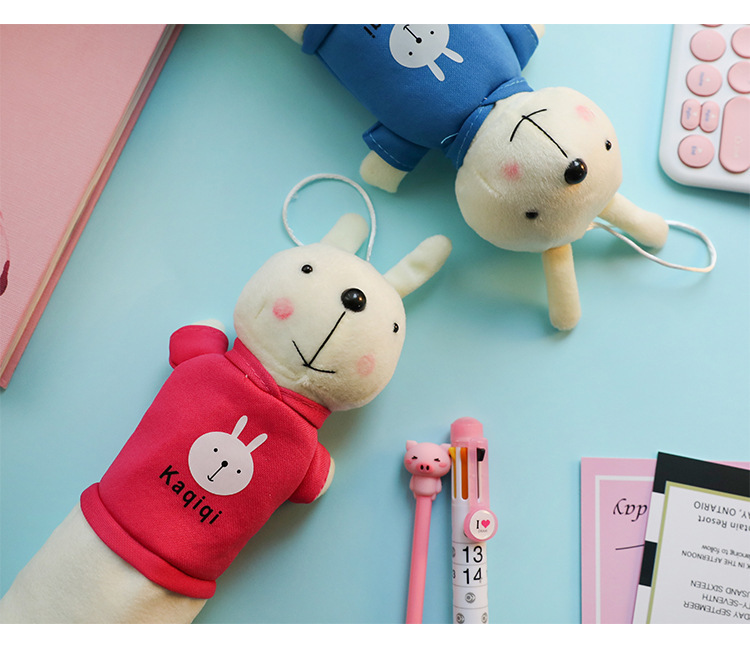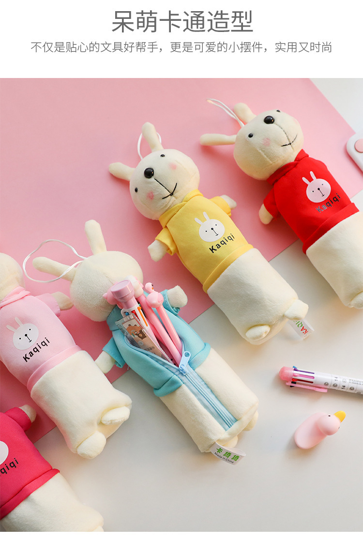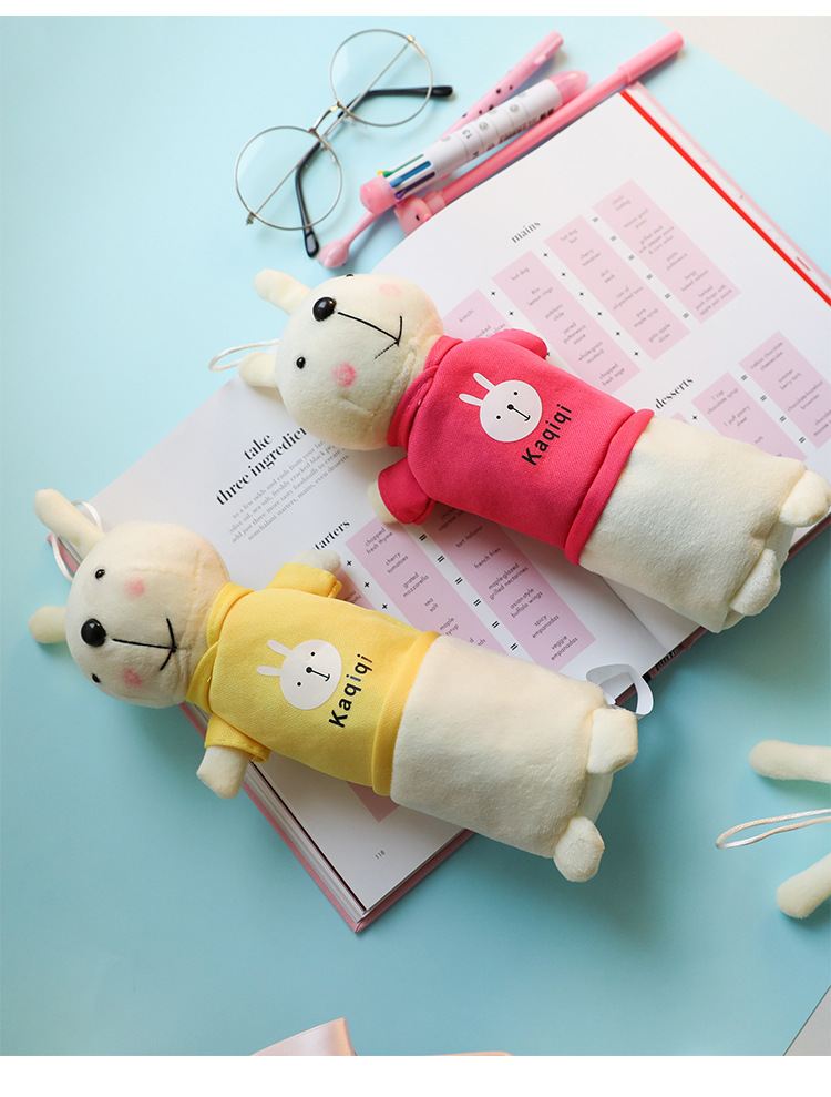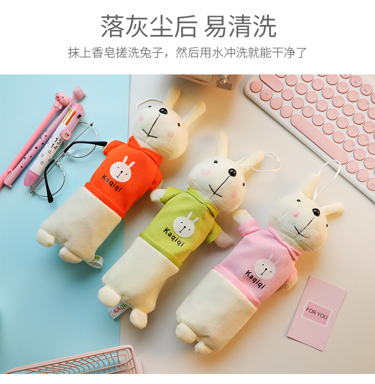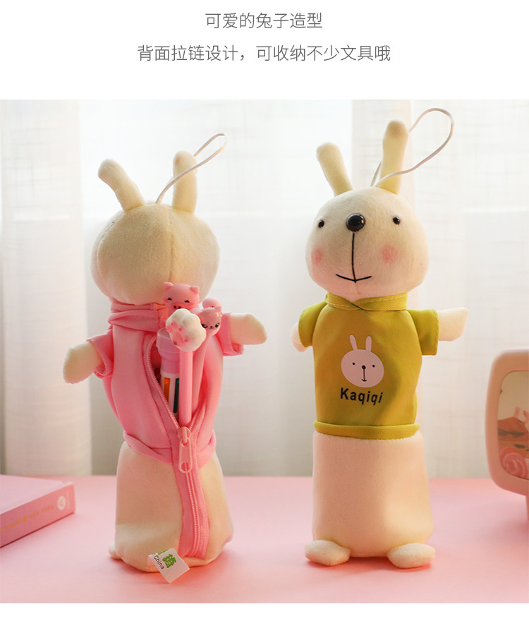 ぬいぐるみのウサギの筆の袋の漫画の動物の文房具の袋の学生の創意の公仔の多機能の文房具の箱の入学シーズン