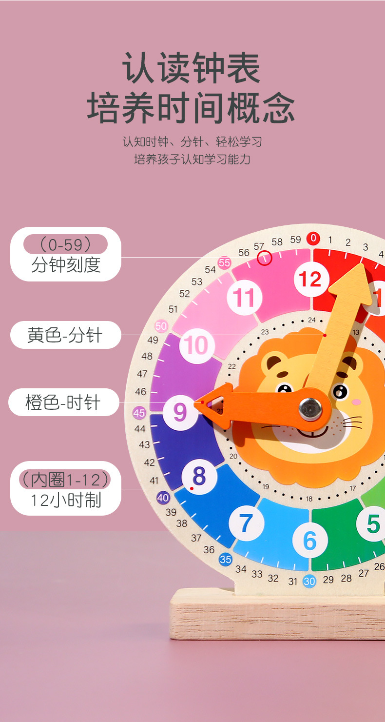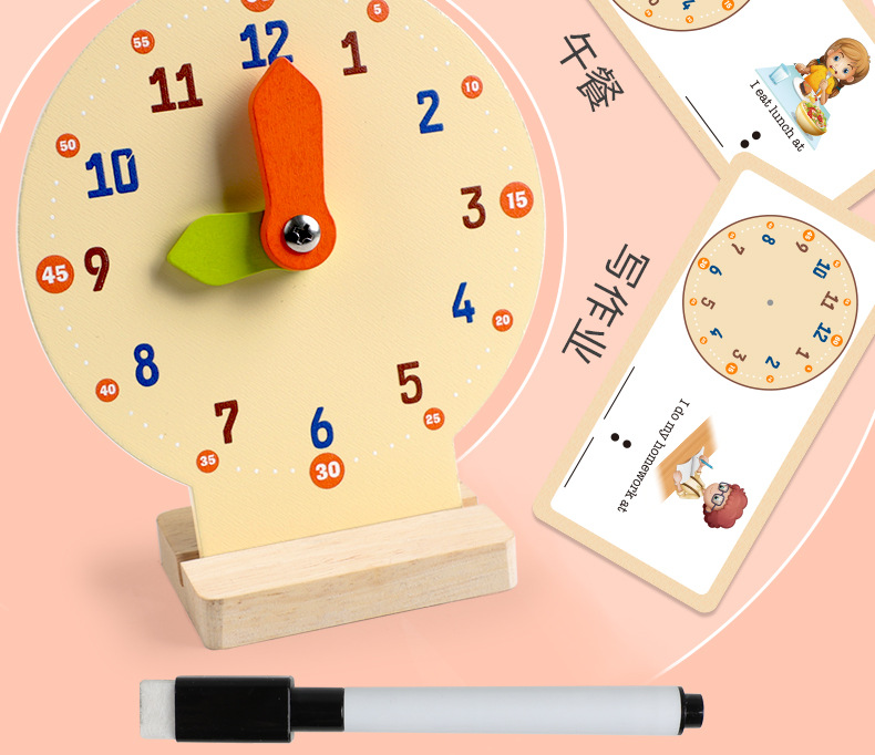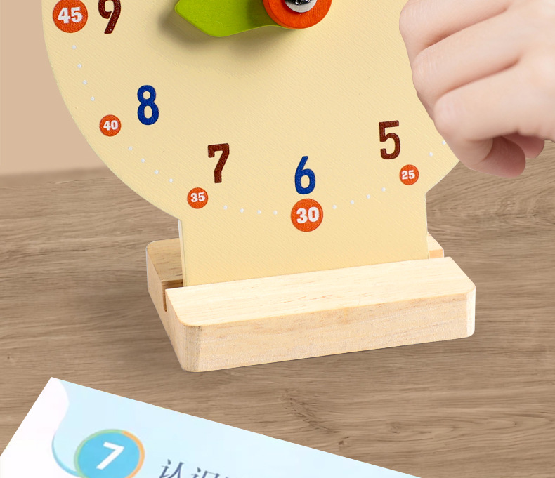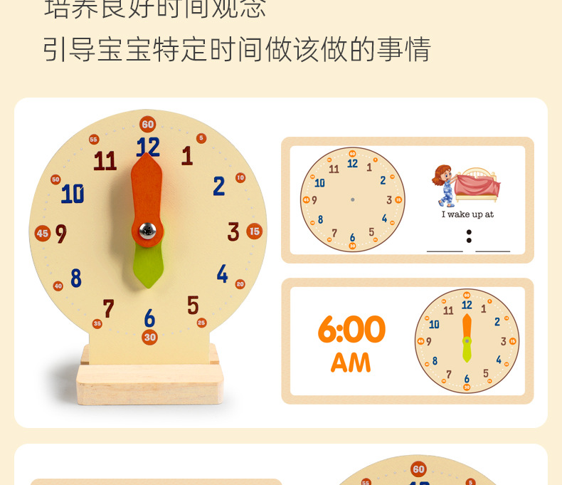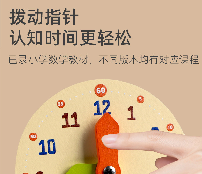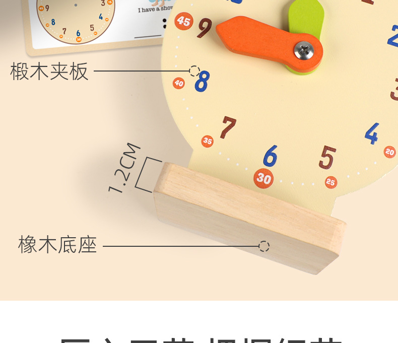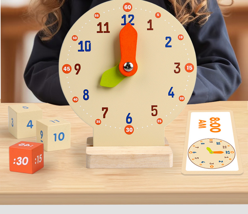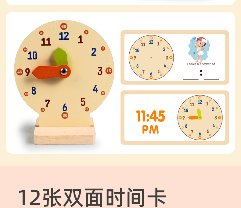 儿童早教认识时间时钟模型教具木质数字时钟闹钟幼儿益智钟表玩具