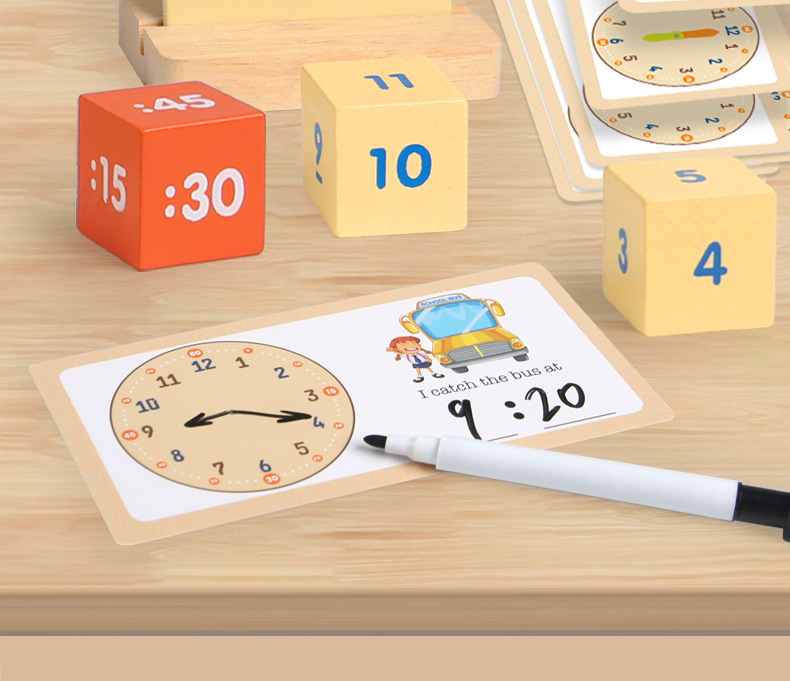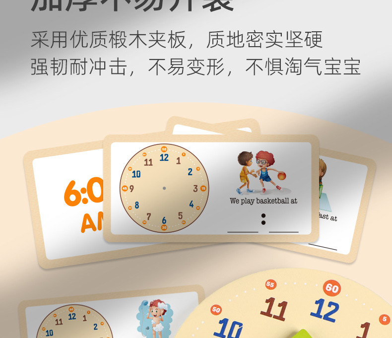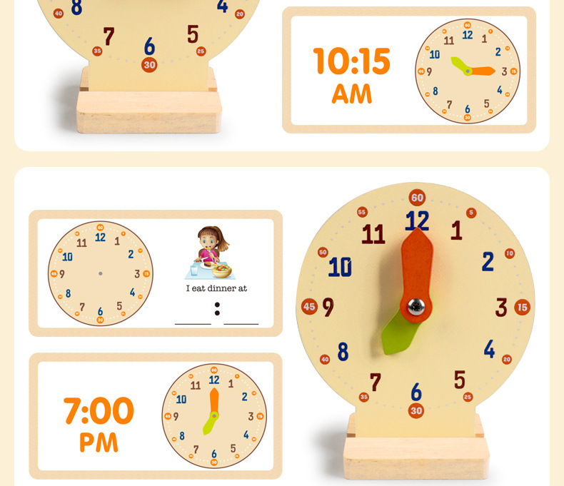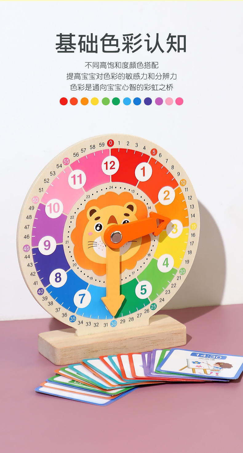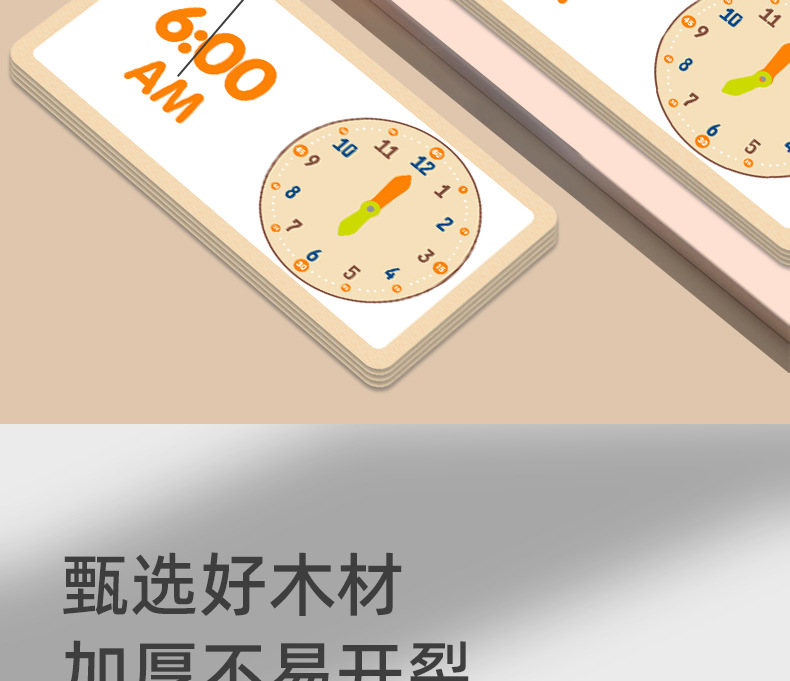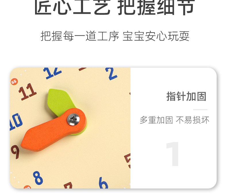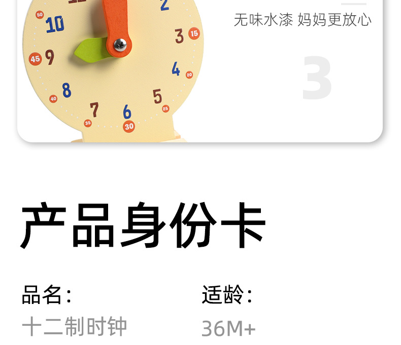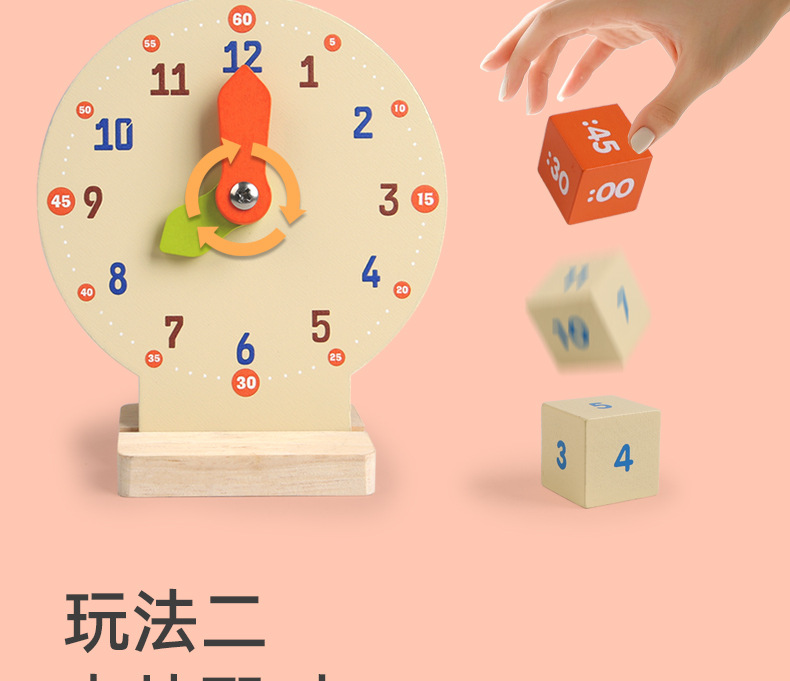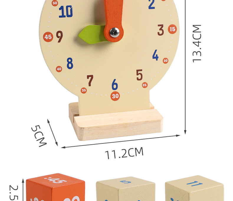 儿童早教认识时间时钟模型教具木质数字时钟闹钟幼儿益智钟表玩具
