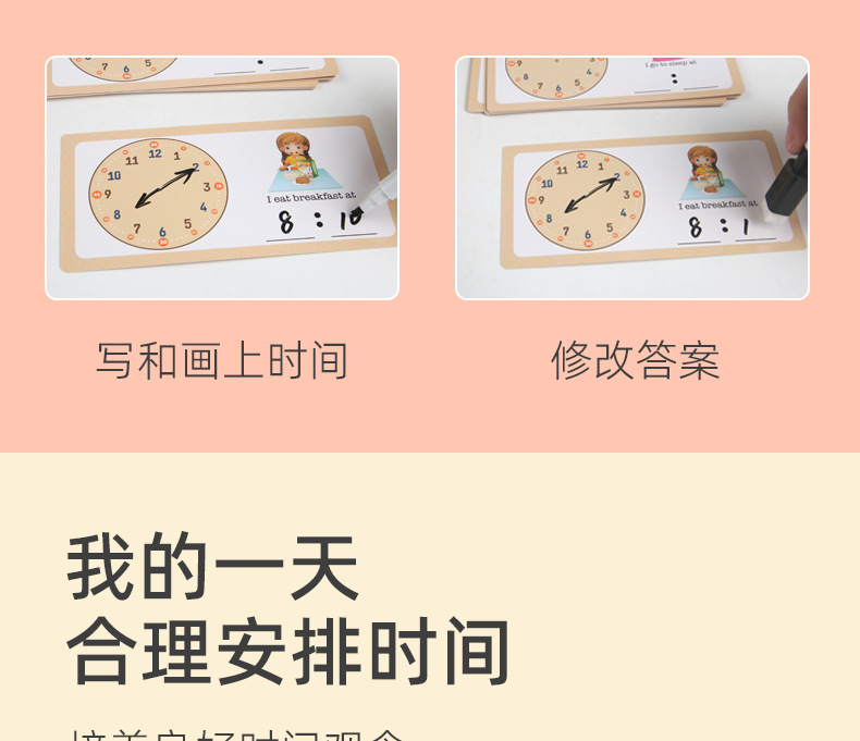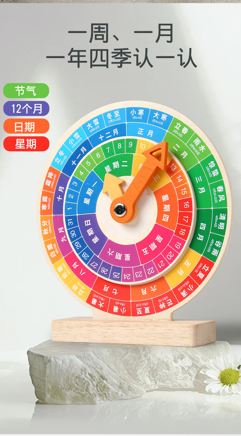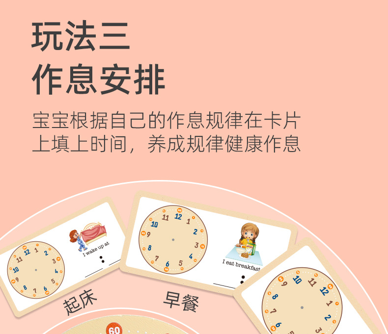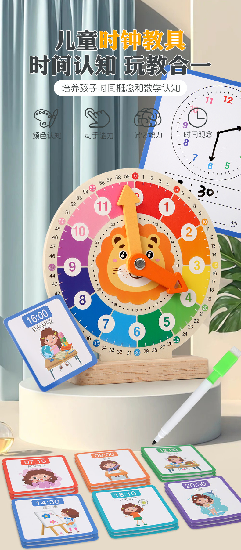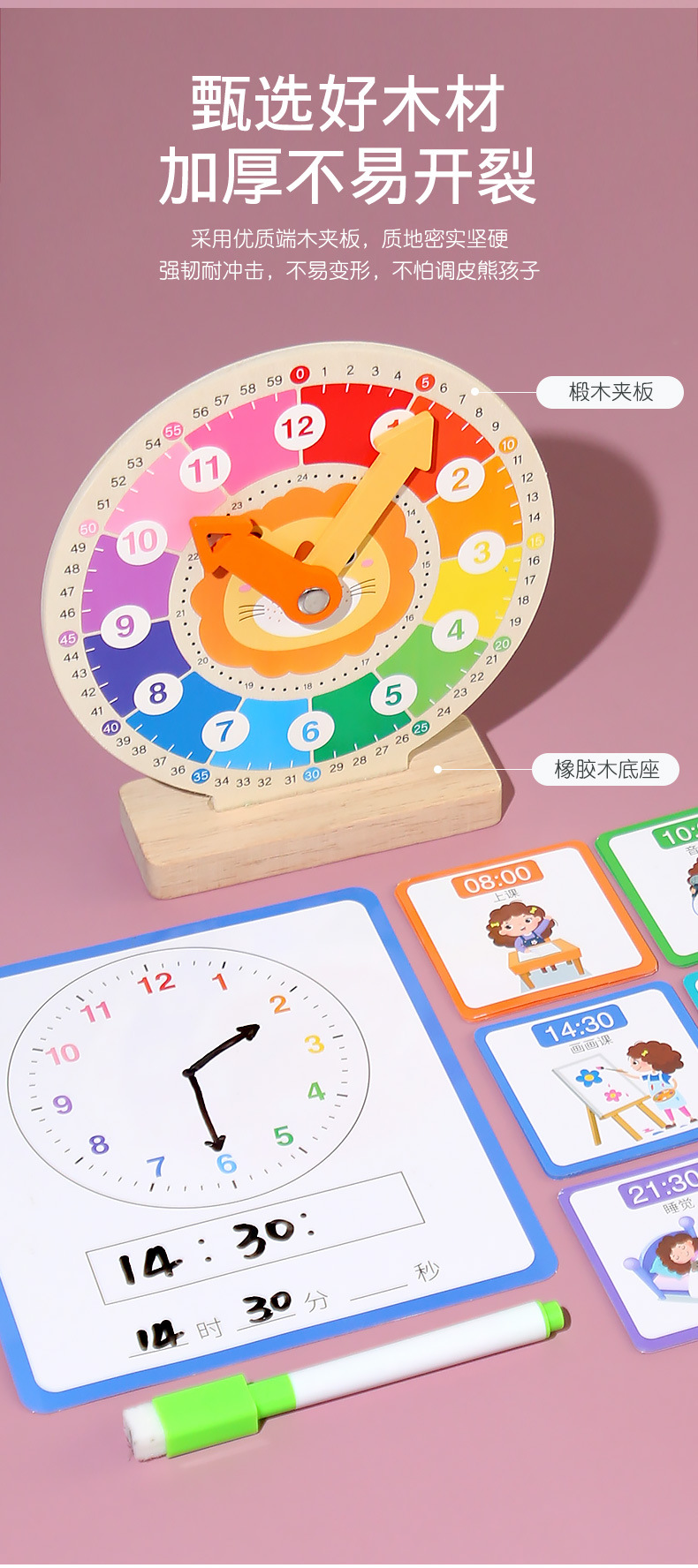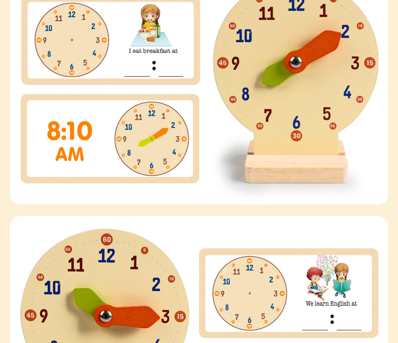 儿童早教认识时间时钟模型教具木质数字时钟闹钟幼儿益智钟表玩具