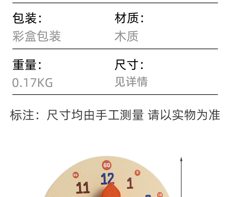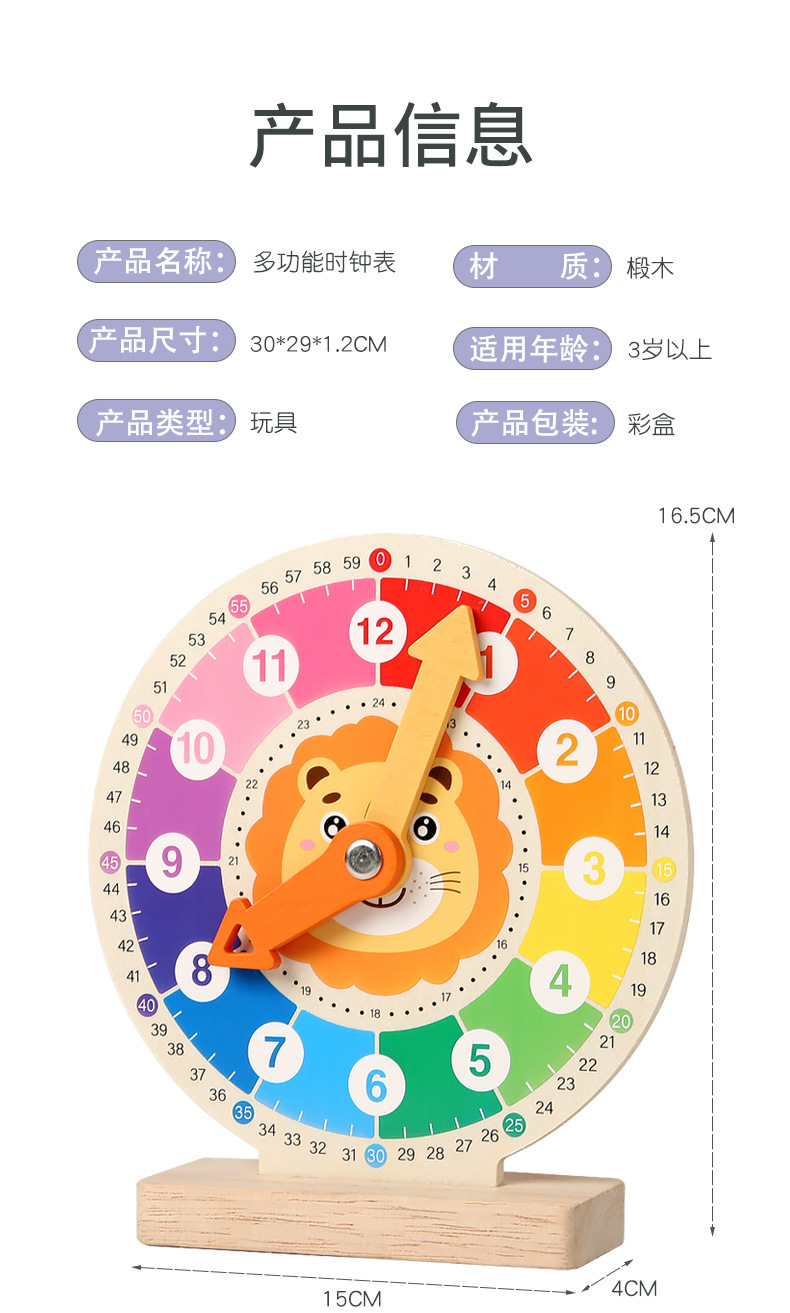 リトルライオン時計 0.19KG,時計教材 0.3KG,木製時計モデル 0.4KG,12時間時計 0.15KG