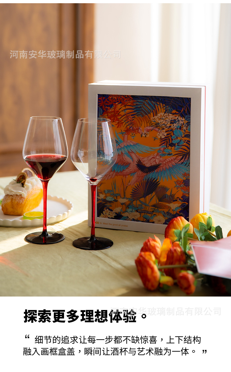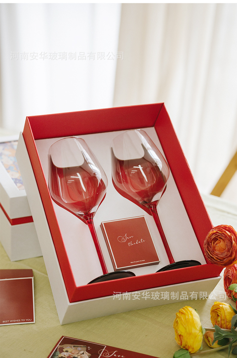 Anhua クリスタル赤ワイングラスライト高級ハイエンド赤いロッドゴブレットギフトボックスセットワイングラス結婚祝いギフト