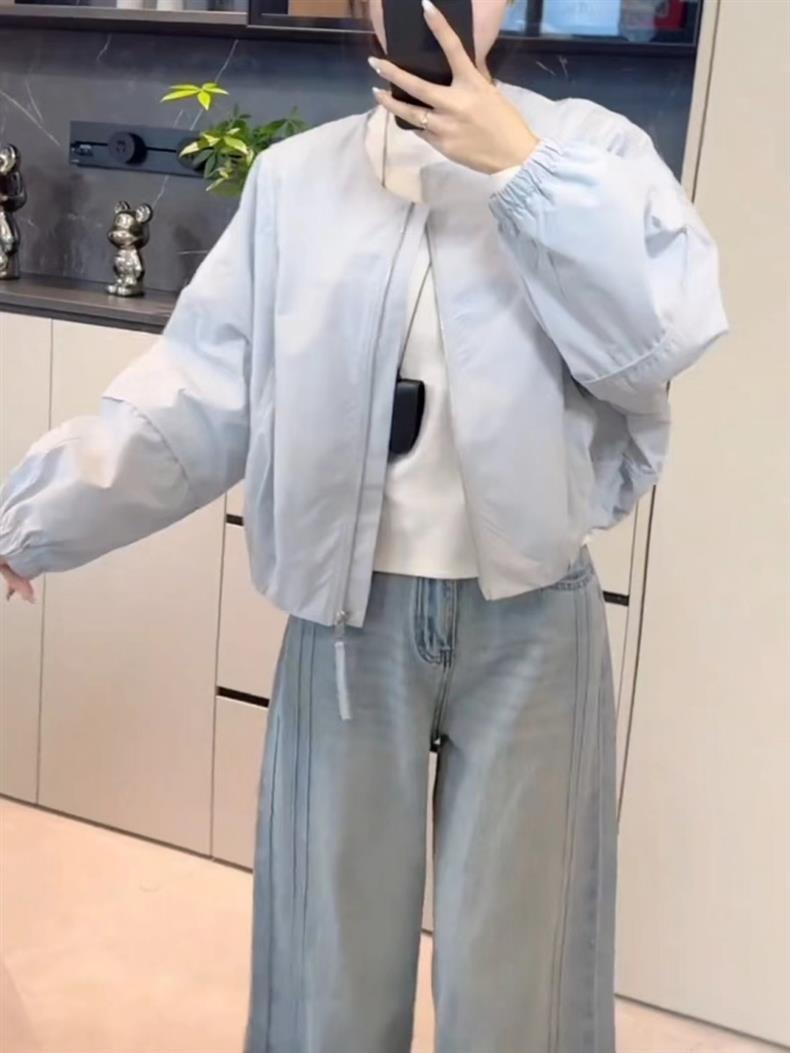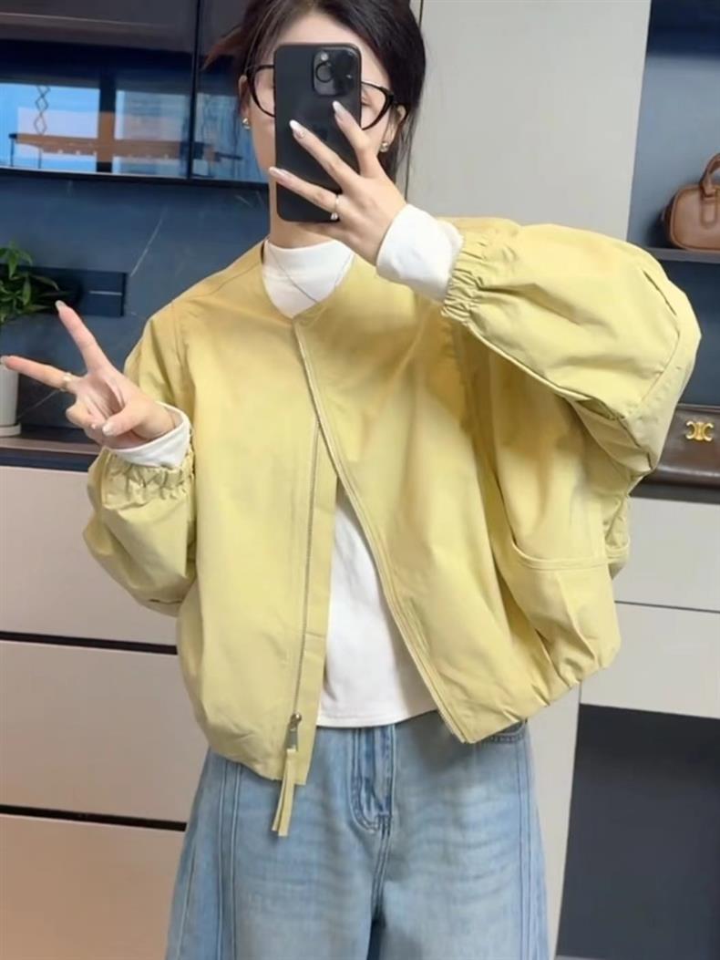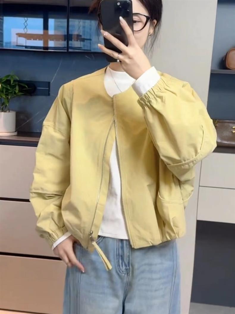 女性用ショートベースボールジャケット2025春新作シンプルルーズスモールカジュアル万能ジャケットトップトレンディ