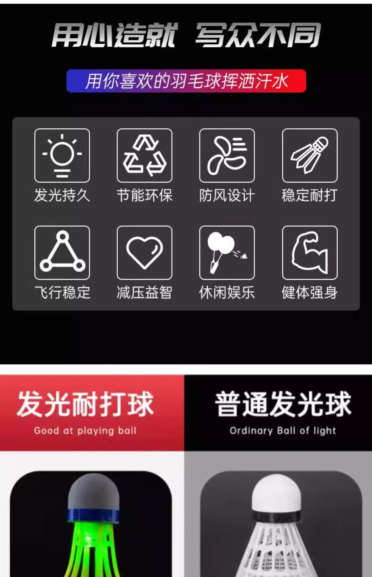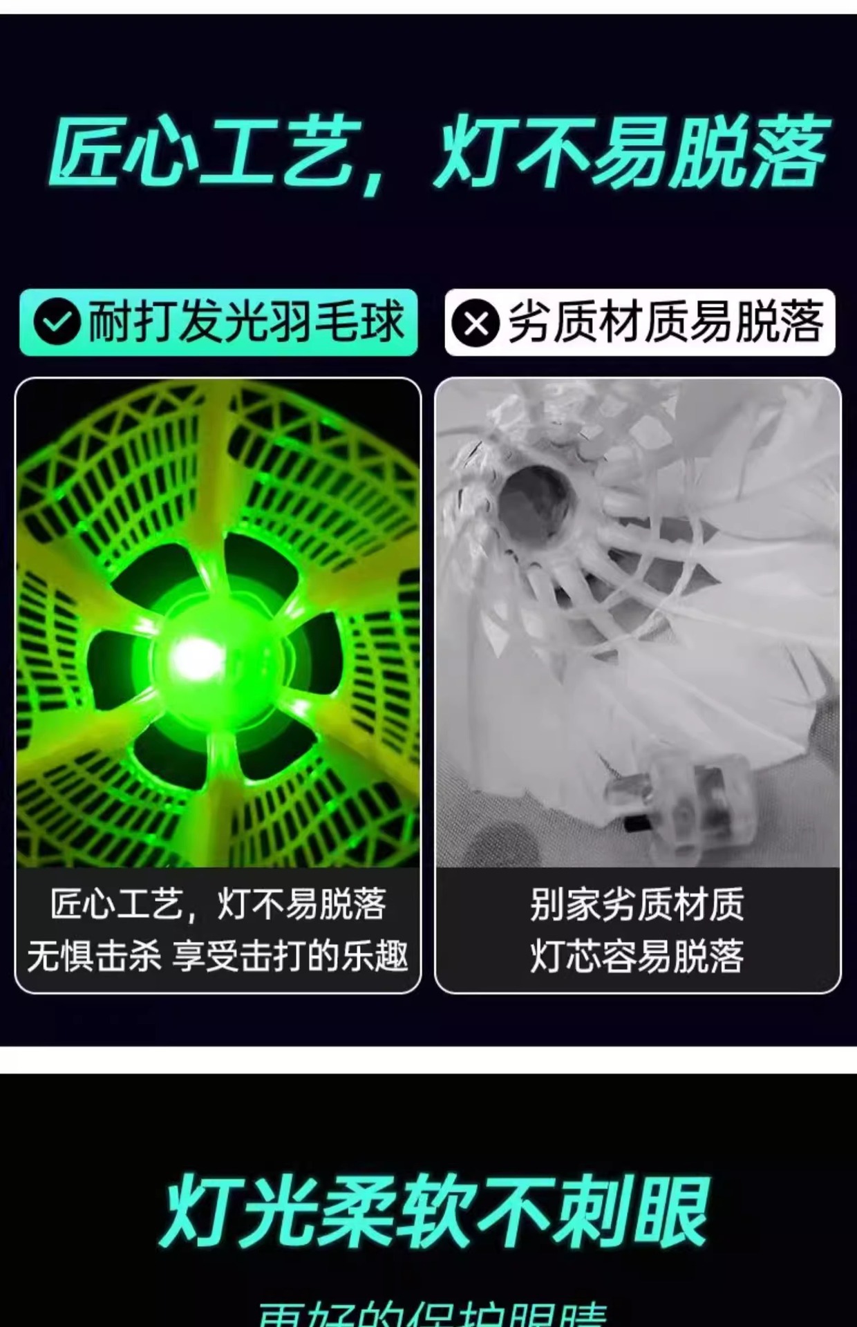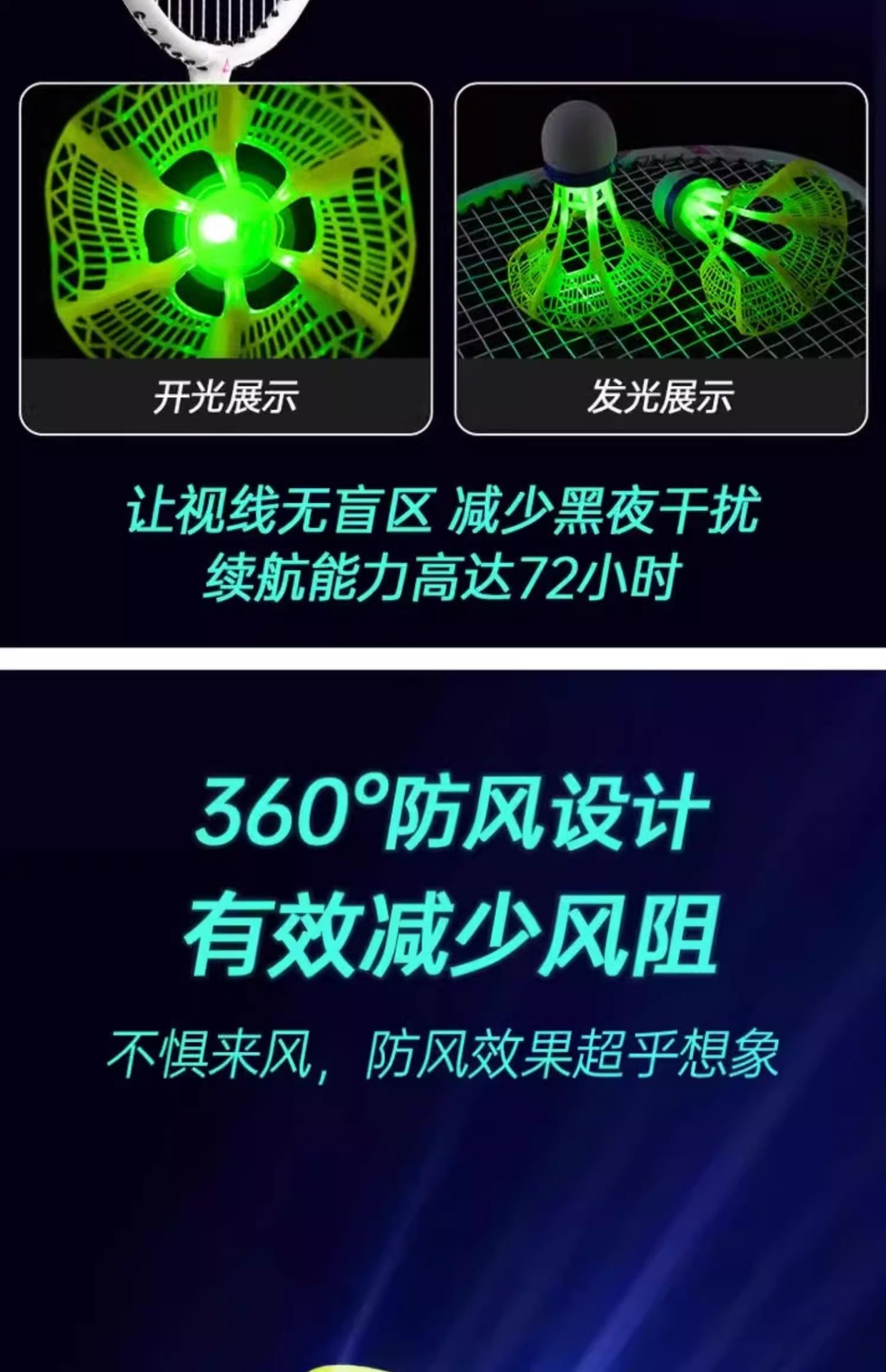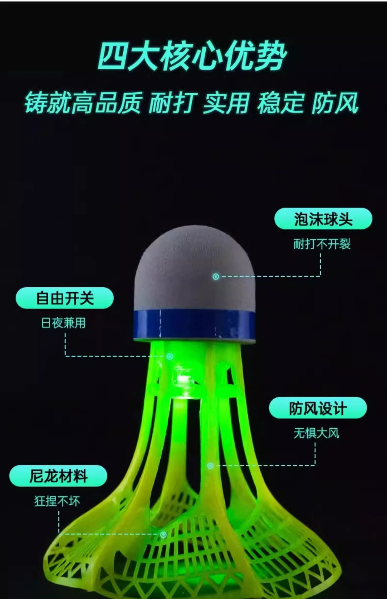 发光羽毛球夜用户外防风球耐打塑料胶训练球打不烂夜光高弹力抗风